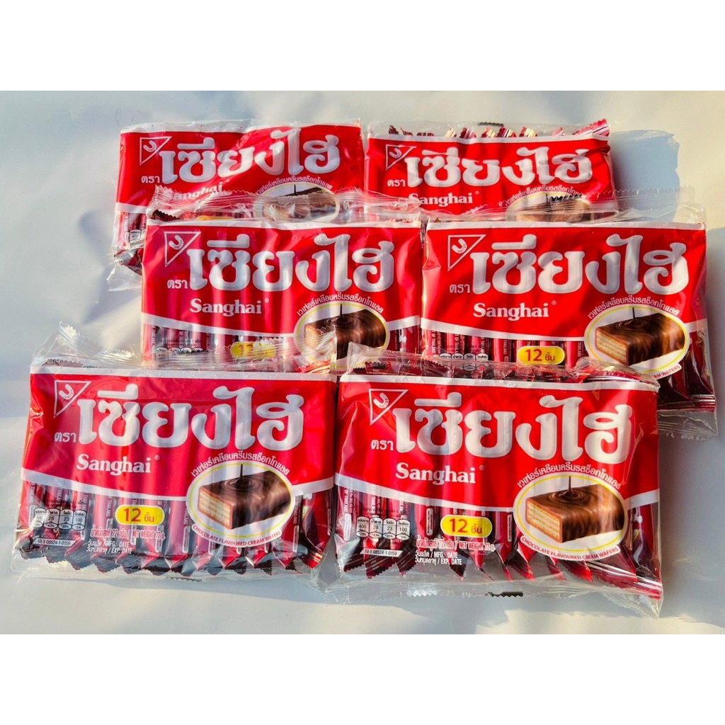 (6แพ็ค) แพ็ค12ชิ้น เซียงไฮเวเฟอร์ ตำนานขนมอร่อย มากกว่า 30 ปี แพ็ค72กรัม