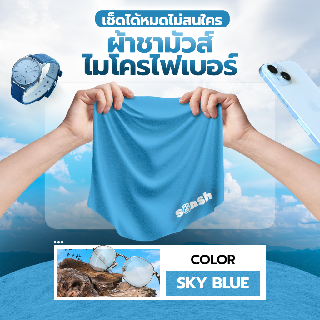 ผ้าเช็ดแว่น SMASH สีฟ้า Sky Blue เนื้อผ้าดี เช็ดออกง่าย ไม่ทำร้ายเลนส์ SP616