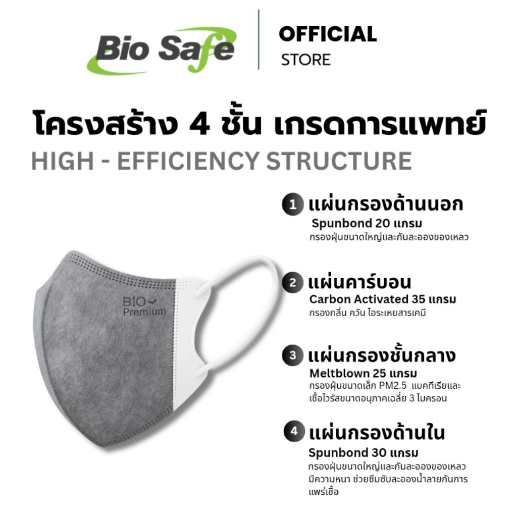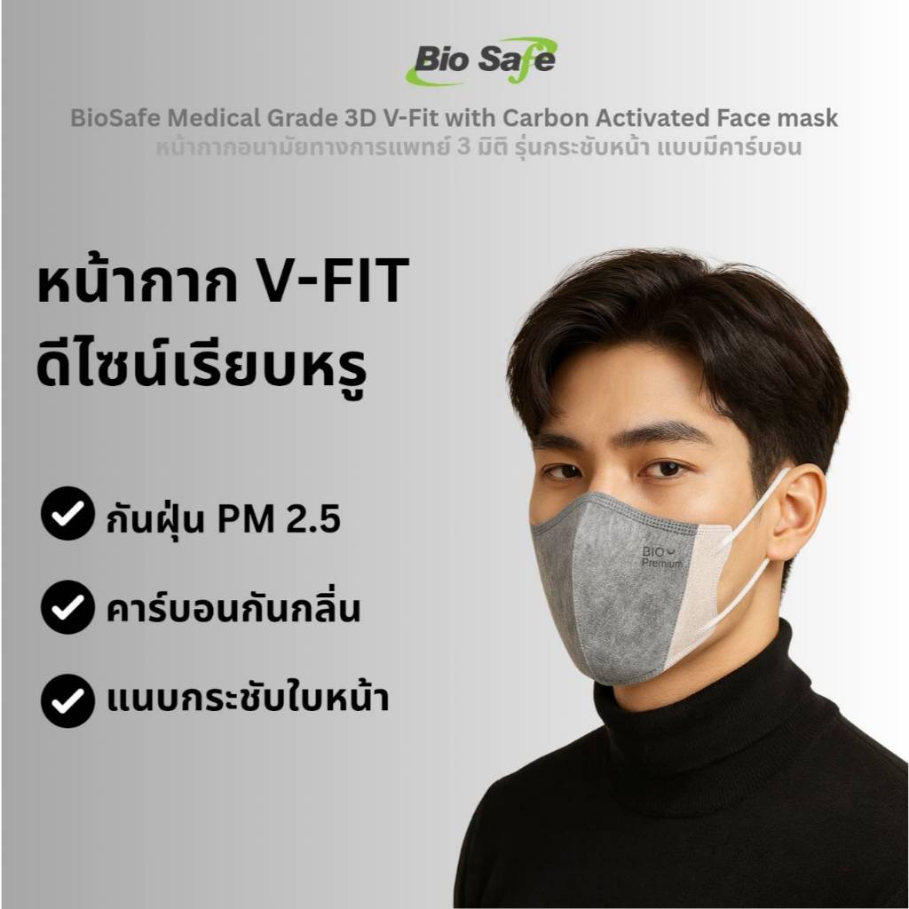หน้ากากอนามัย 4 ชั้น V-FIT Carbon รูปทรงสามมิติ รุ่นกระชับหน้าเกรดการแพทย์ กันฝุ่น PM 2.5 เชื้อโรค ผลิตไทย BioSafe