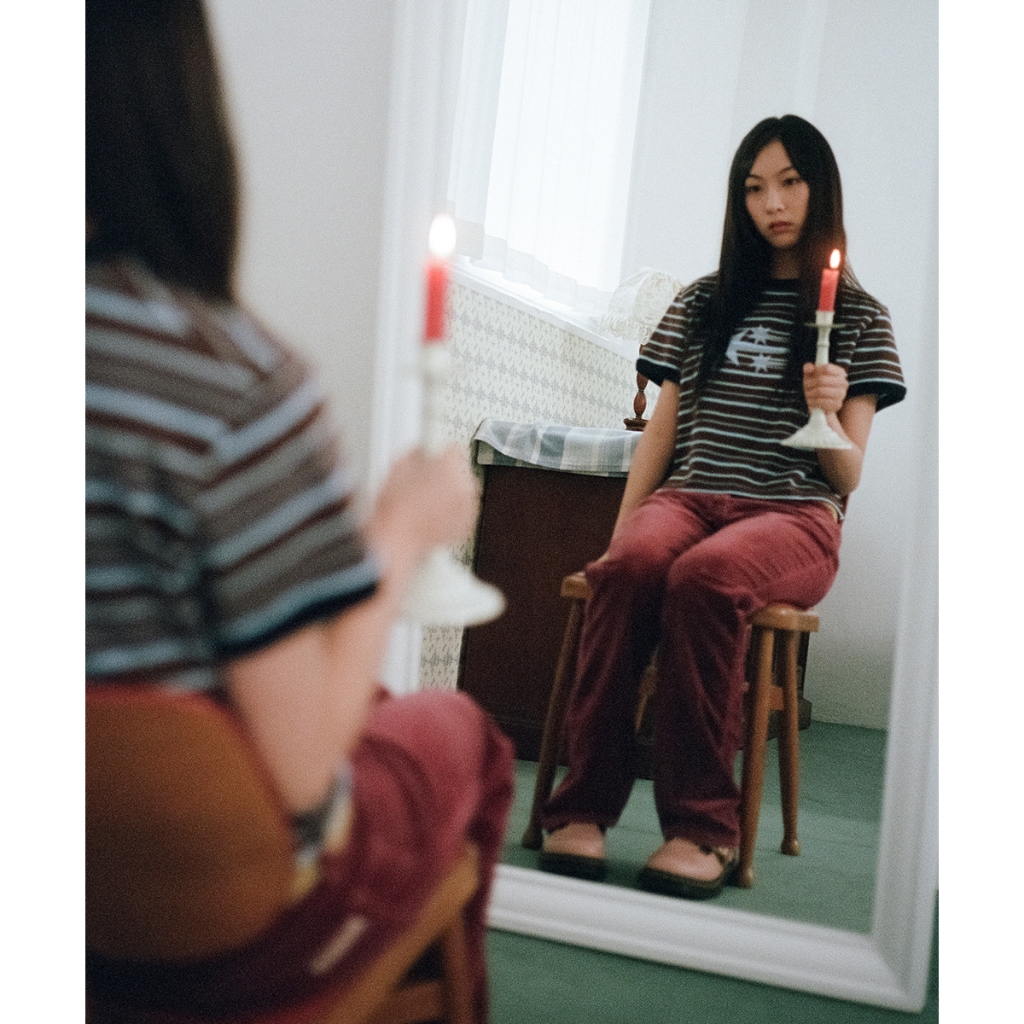 [NICEGHOSTCLUB] STRIPE 3STAR BASIC RINGER TEE_สไตล์เกาหลี