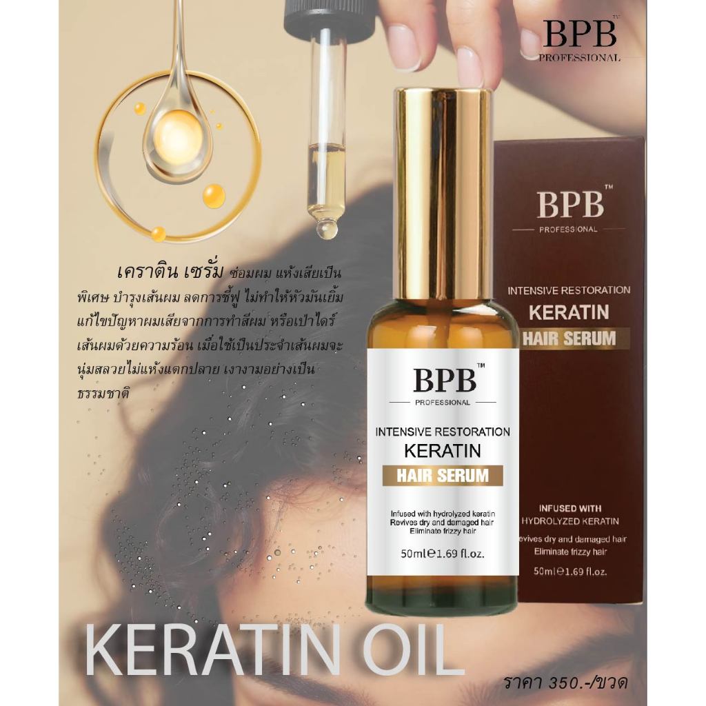BPB Intensive Restoration Keratin Hair Serum 50ml. บีพีบี อินเทนซีฟ รีสตอเรชั่น เคราติน แฮร์ เซรั่ม สูตรเคราตินเข้มข้น