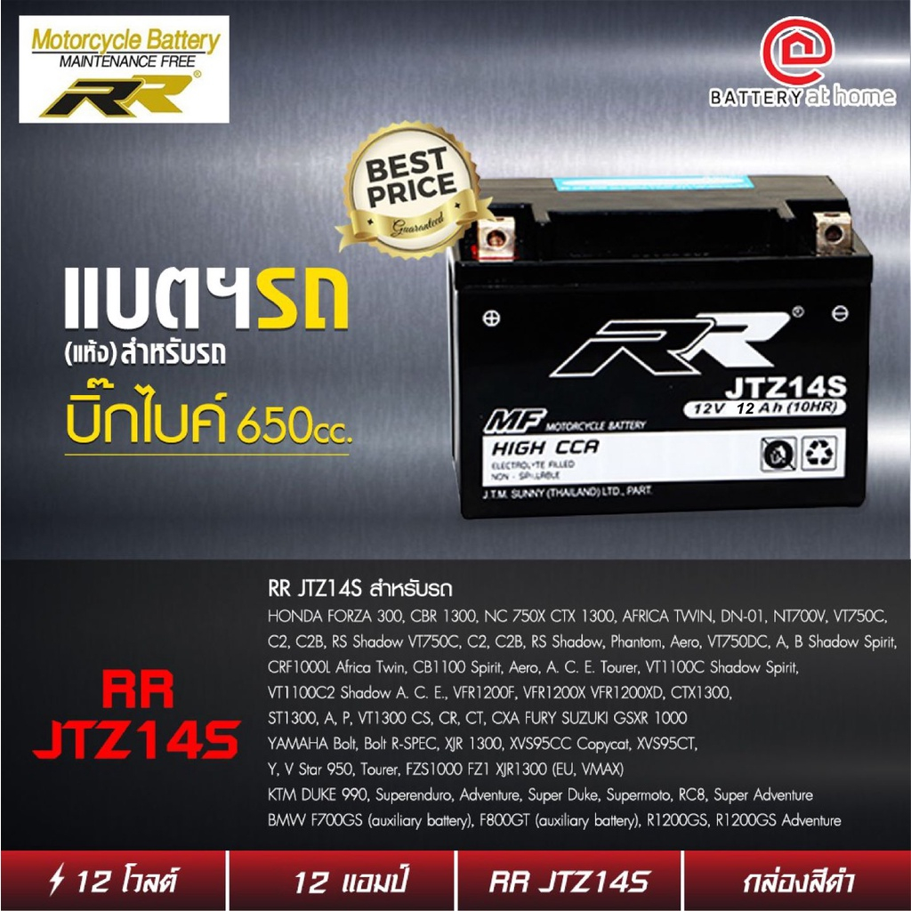 RR JTZ14S แบตเตอรี่มอเตอร์ไซค์(แห้ง) สำหรับรถมอเตอร์ไซค์ทั่วไป 12โวลต์ 12แอมป์