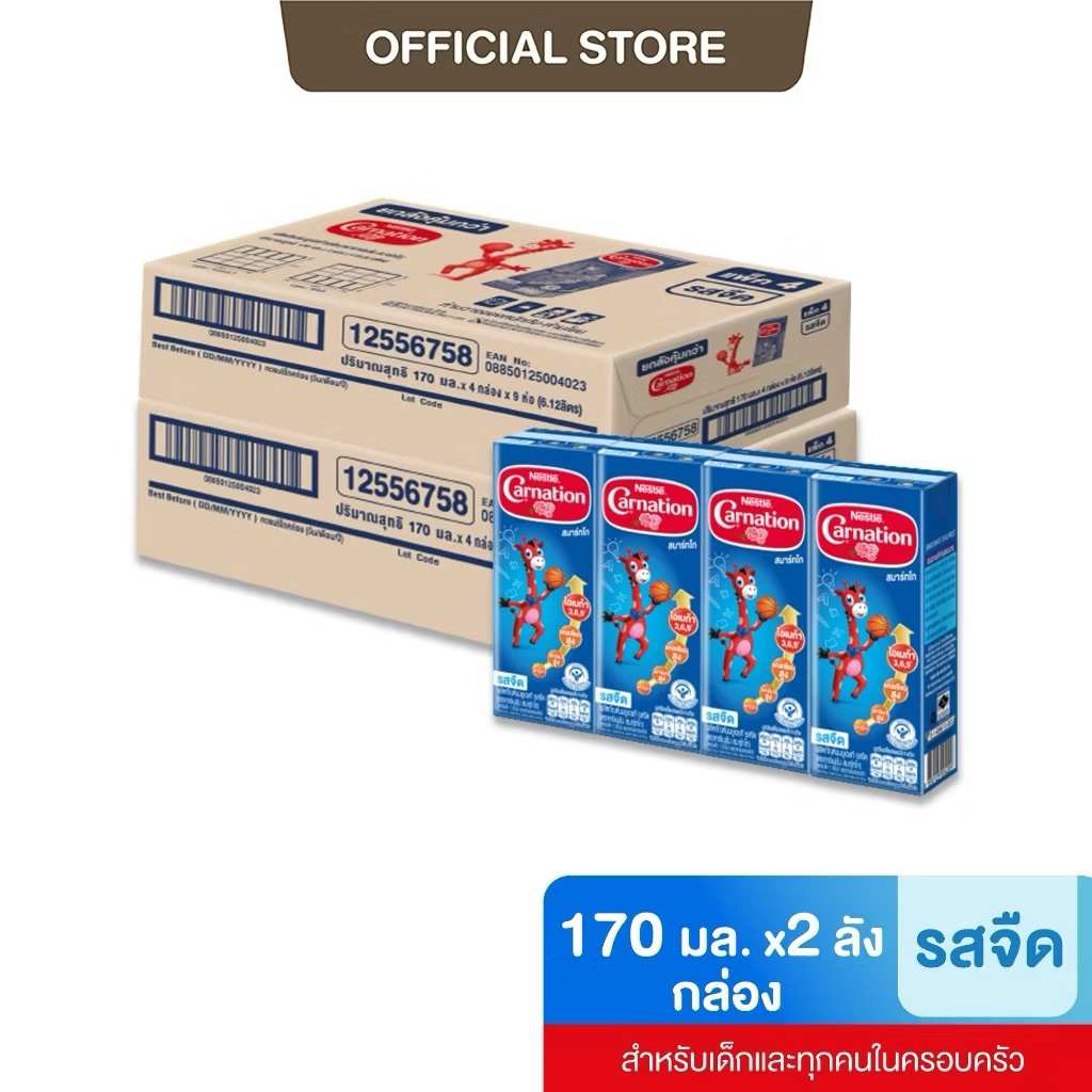 นมยูเอชทีคาร์เนชัน สมาร์ทโก รสจืด 170 มล. สำหรับเด็กและครอบครัว