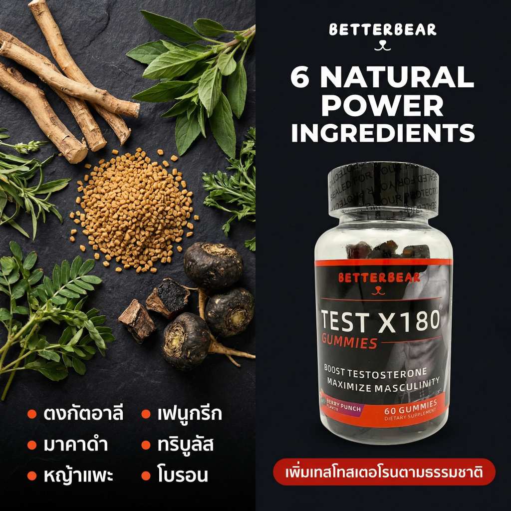 Test X 180 เทสโทสเตอโรนผู้ชาย Testosterone Booster แบบ Gummies เพิ่มสมรรถภาพสำหรับผู้ชายแบบเข้มข้น