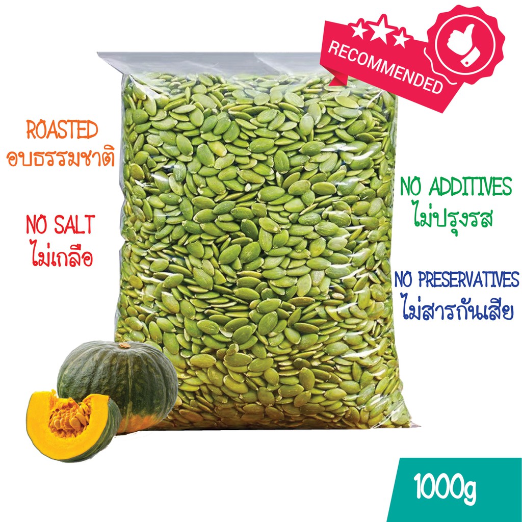 เมล็ดฟักทอง 1 กิโลกรัม พร้อมทาน คุณภาพเกรด AAA ซีลสูญญากาศสะอาด มี อย.