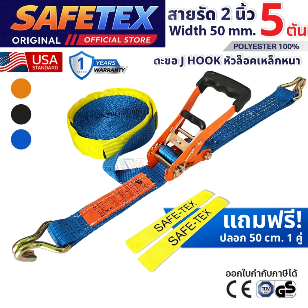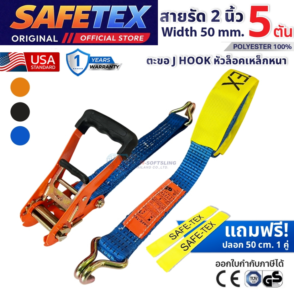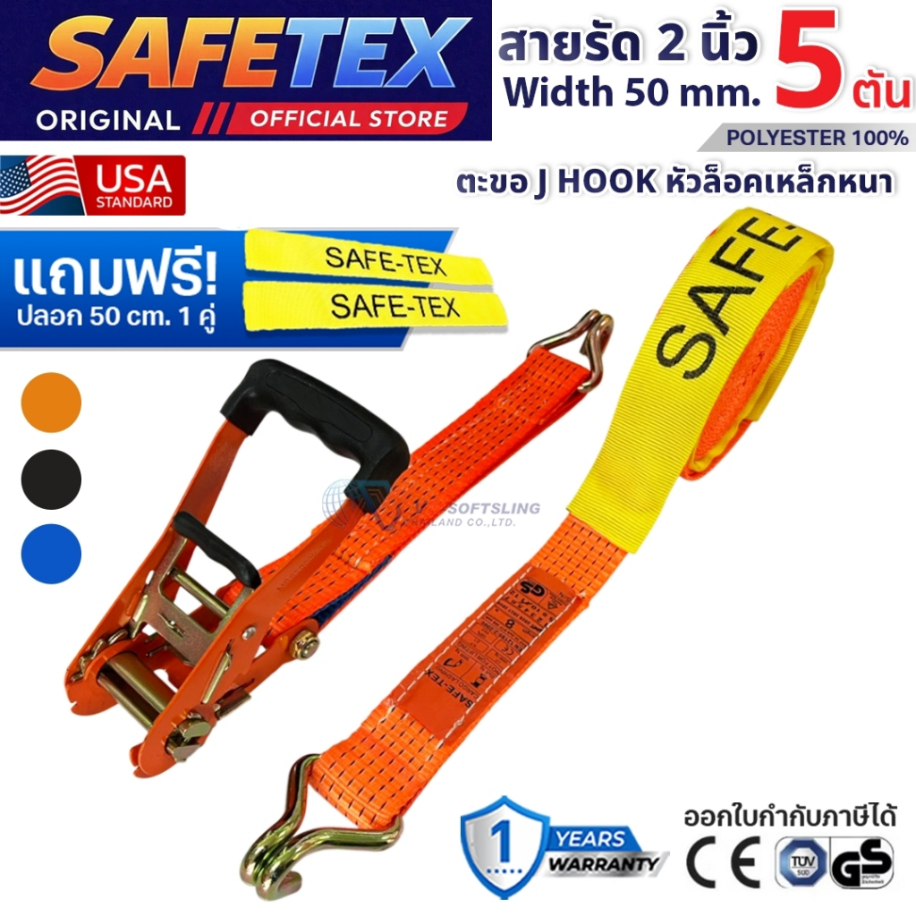 SAFETEX USA สายรัดก๊อกแก๊ก 2 นิ้ว 5 ตัน (หัวหนา หุ้มยาง) สายรัดของ สายรัดรถบรรทุก สายรัดโพลีเอสเตอร์