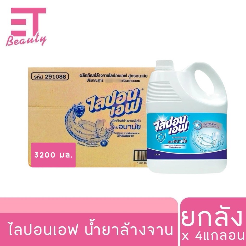etbeauty (ยกลัง) ไลปอนเอฟ ผลิตภัณฑ์ล้างจาน สูตรอนามัย 3200 มล. x4 แกลลอน