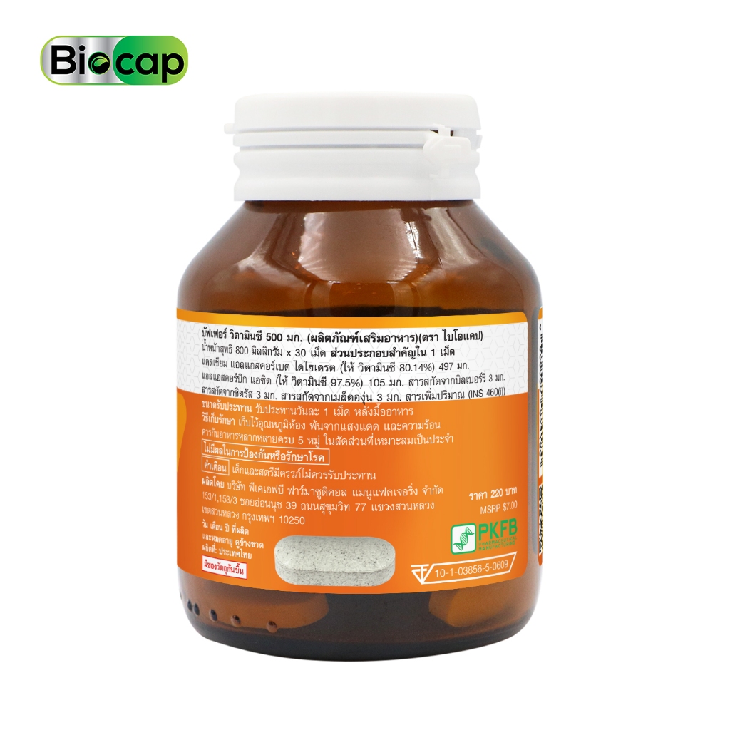 [แพ็ค 3 ขวด] บัฟเฟอร์ วิตามินซี 500 มก. ไบโอแคป Buffered Vitamin C 500 mg. Biocap วิตามินซี500 วิตามินซีพลัส