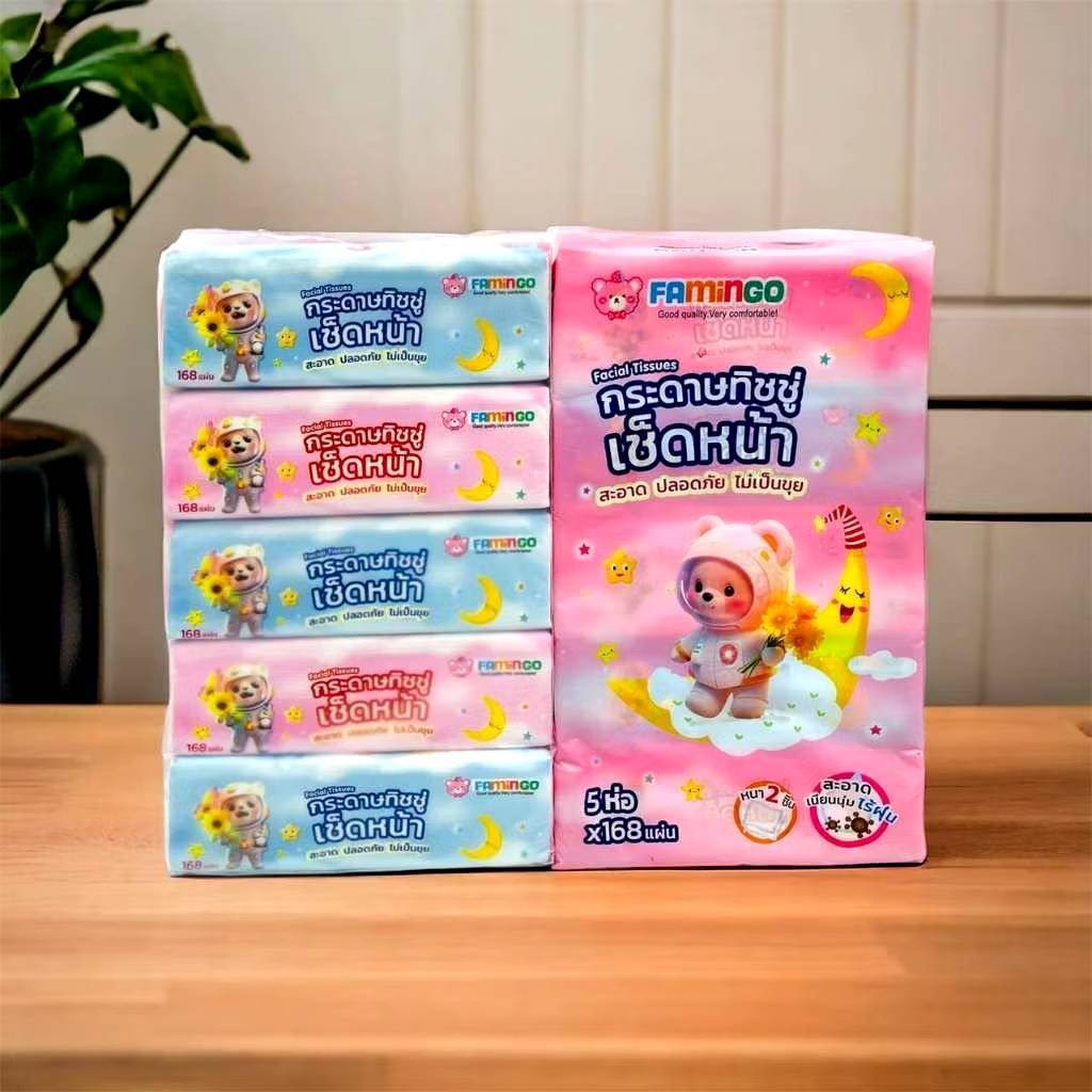 กระดาษทิชชู่ เช็ดหน้า Famingo หนานุ่ม ไม่เป็นขุย
