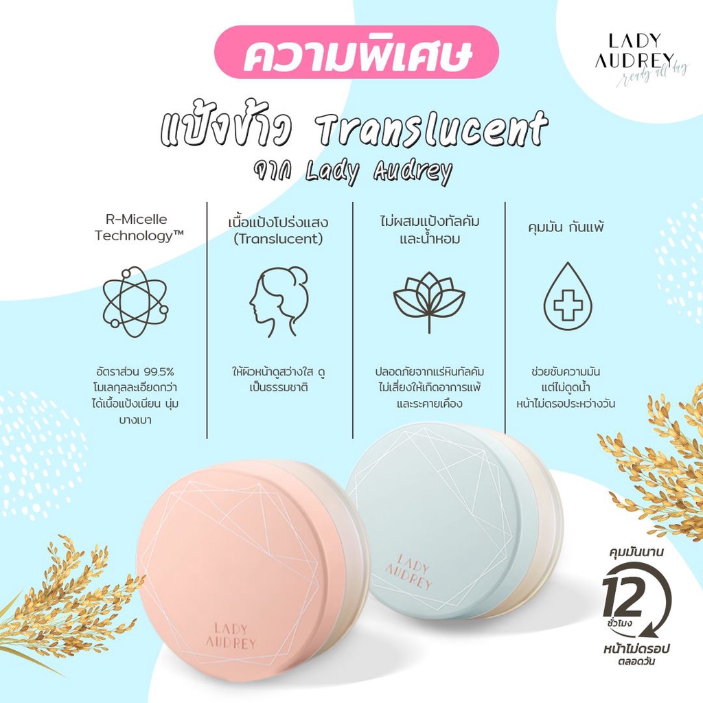 Lady Audrey Rice Loose Powder long-lasting oil control 6.5g เลดี้ ออเดรย์ แป้งฝุ่นจากข้าว คุมมัน อ่อนโยน
