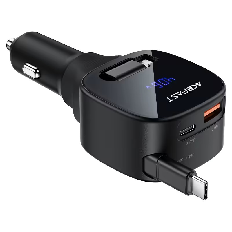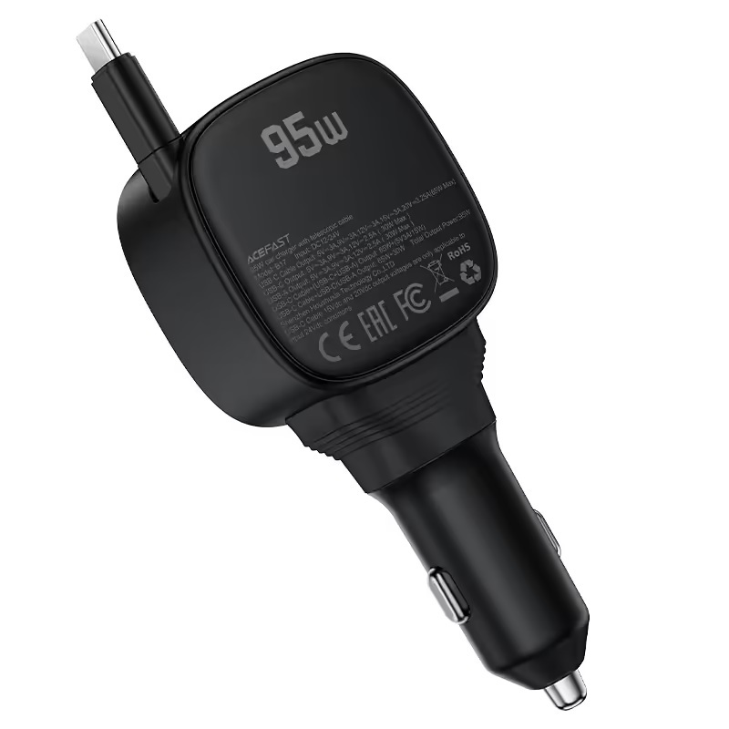 Acefast B17 ที่ชาร์จในรถ 95W Fast Car Charger 2xUSB-C + USB-A พร้อมสายชาร์จ USB-C แบบดึงเก็บได้