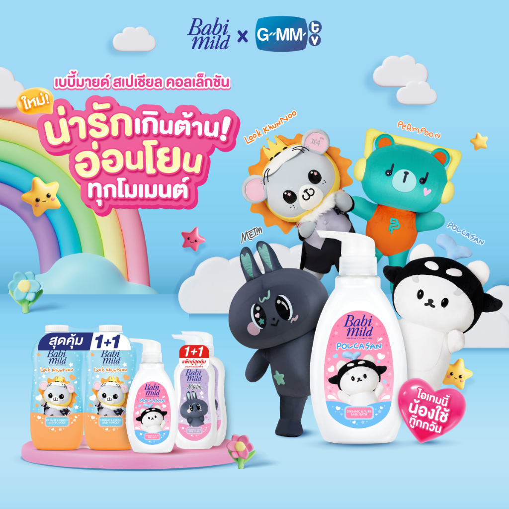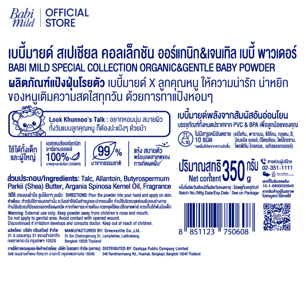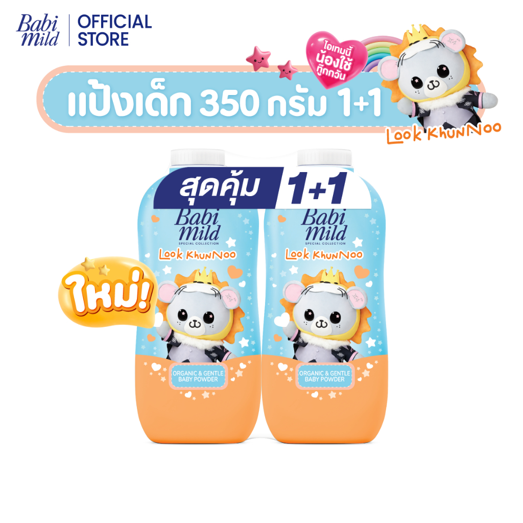 [1แถม1][Babi Mild x Look KhunNoo] แป้งเบบี้มายด์ ออร์แกนิก&เจนเทิล x ลูกคุณหนู / Babi Mild Powder 350g