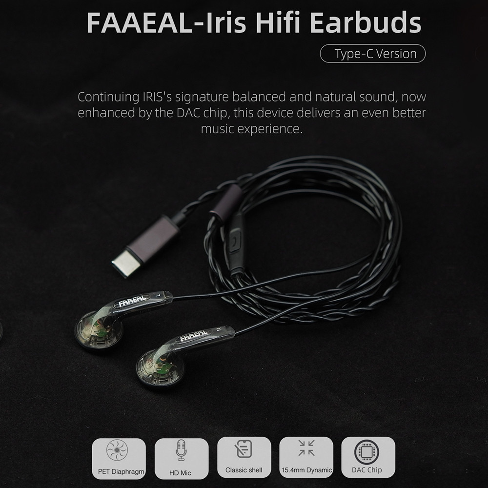 FAAEAL Iris หูฟัง Type-C รุ่นชิป DAC 15.4 มม.แบบไดนามิก Strong Bass เพลงหูฟัง IEM HiFi Sound Classic Shell HD ไมโครโฟนหูฟังชนิดใส่ในหูแบบมีสาย