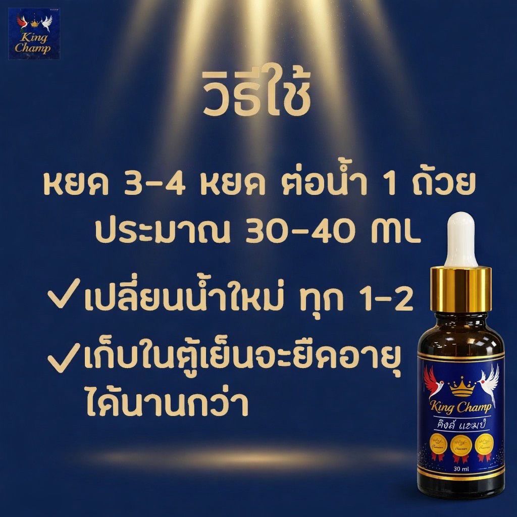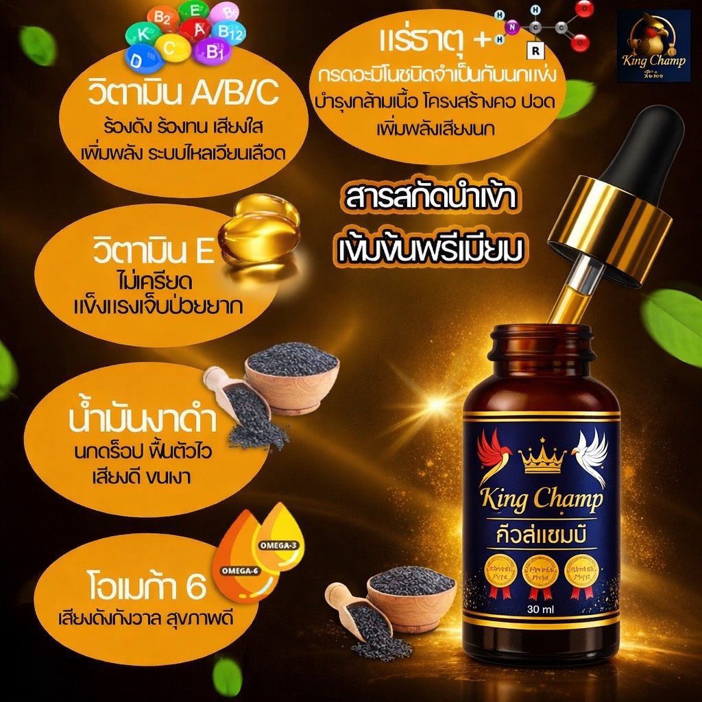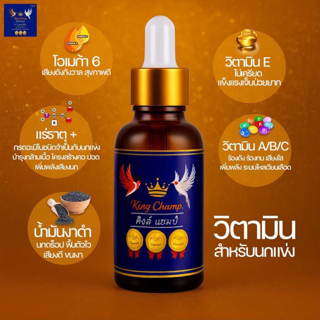 วิตามินสำหรับนกแข่ง คิงส์แชมป์ สูตรพรีเมียม ผสมวิตามิน A/B/C และวิตามิน E ฟื้นตัวไว เสียงดี ขนเงา