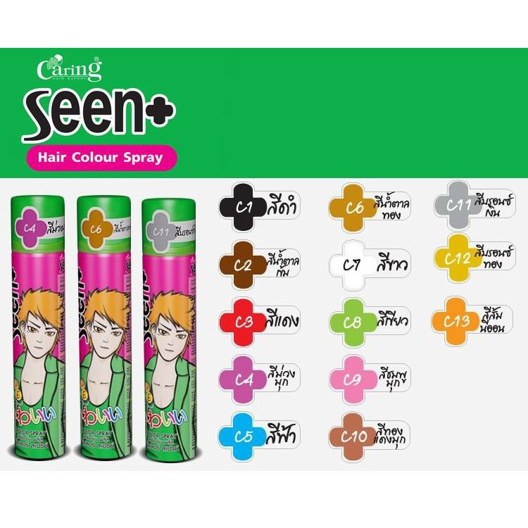 สเปรย์สีผมแฟชั่น แบบสระแล้วหลุด สเปรย์สีแคริ่ง Caring Seen+ Hair Color Spray