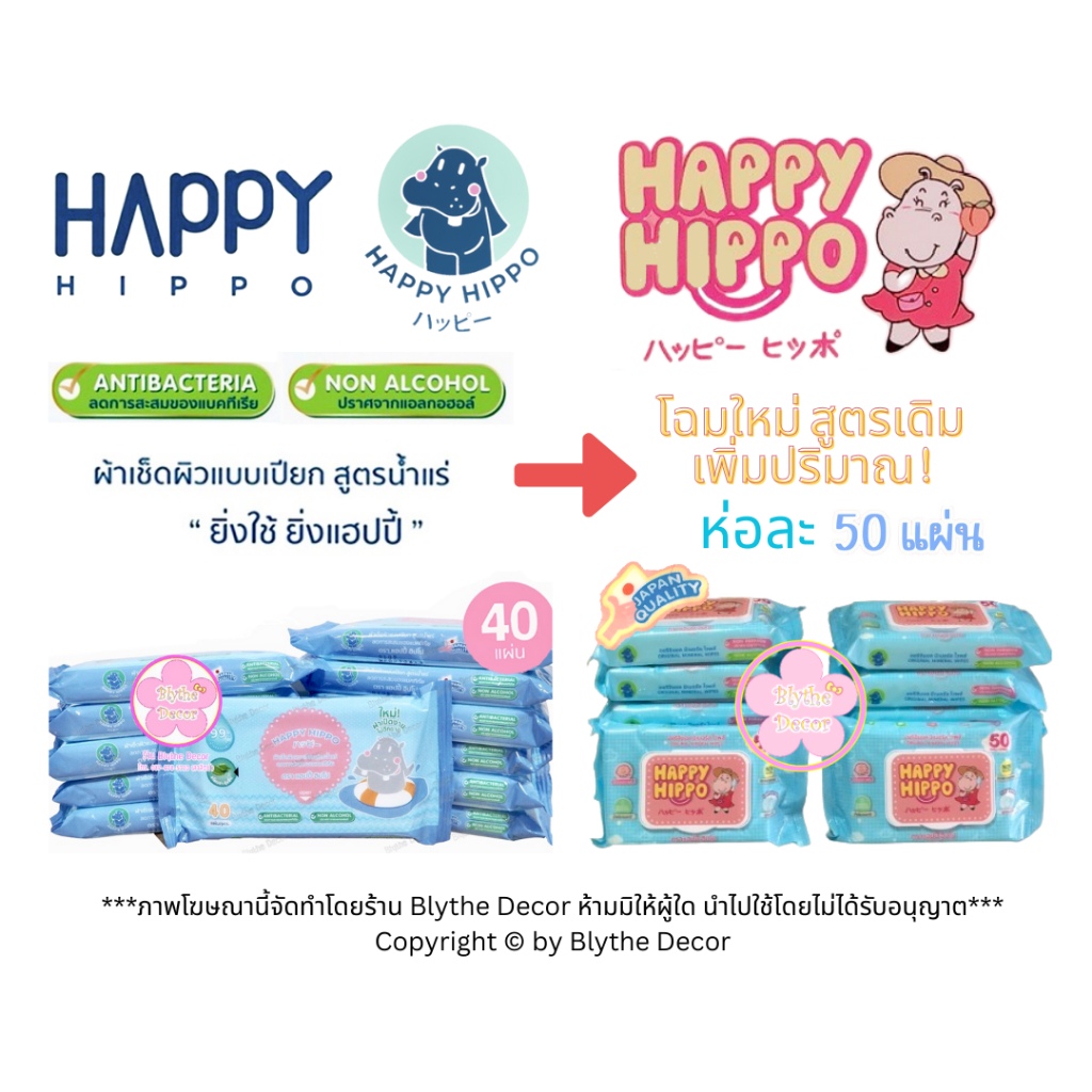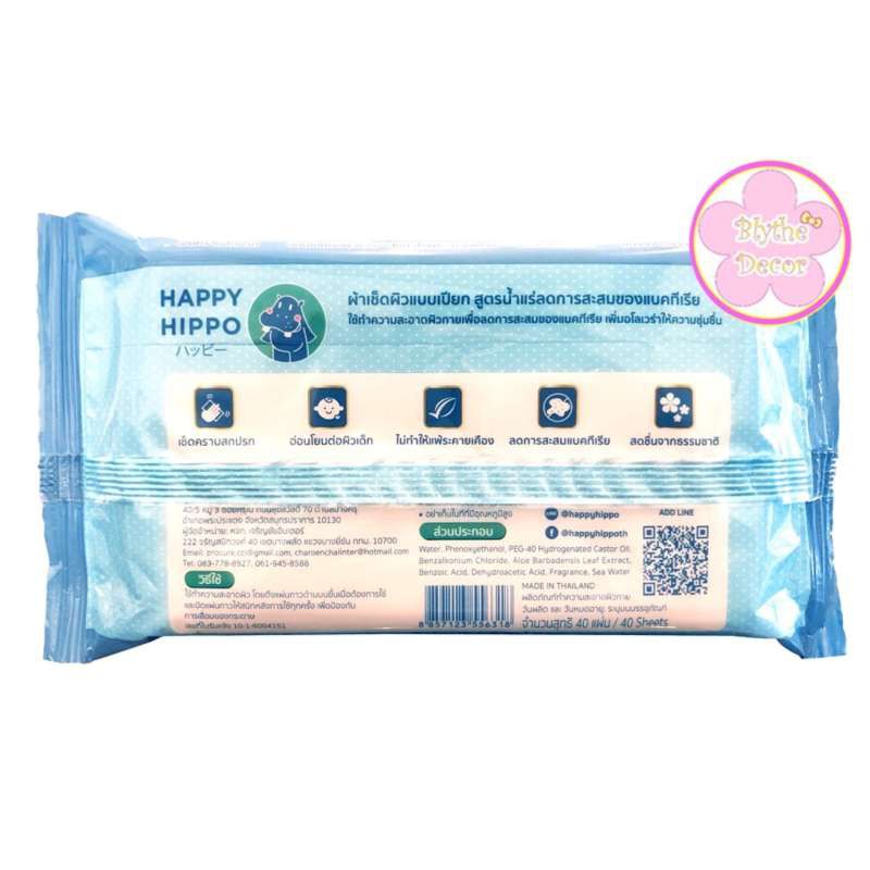 [ยกลัง 36 ห่อ] ทิชชู่เปียก สูตรน้ำแร่สำหรับเด็ก HAPPY HIPPO Mineral baby wipes สูตรอ่อนโยน