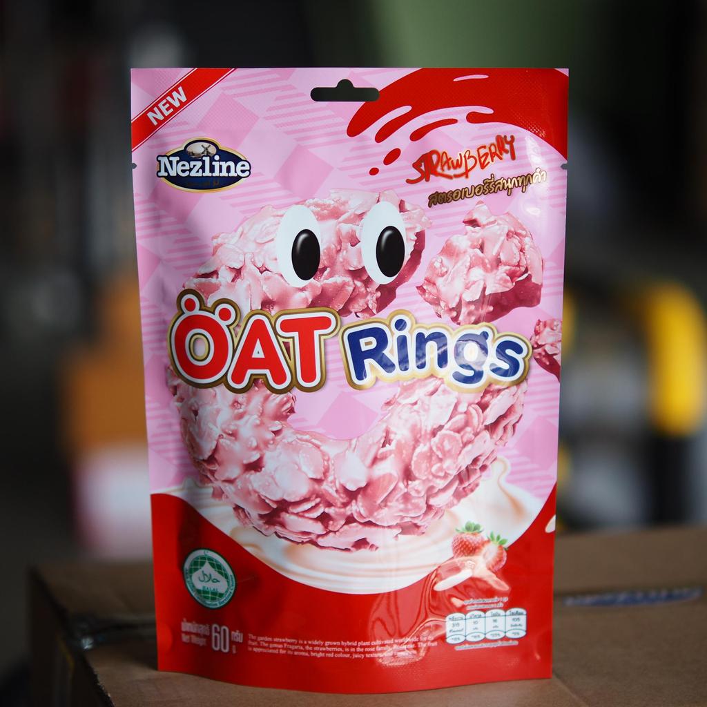 ใหม่! โอ๊ตริง Oat Rings Nezline ขนาด 60 กรัม (1 ห่อมี 10-12 ชิ้น) 3 รสชาติให้เลือก มีฮาลาล ช็อกโกแลต สตรอว์เบอร์รี่