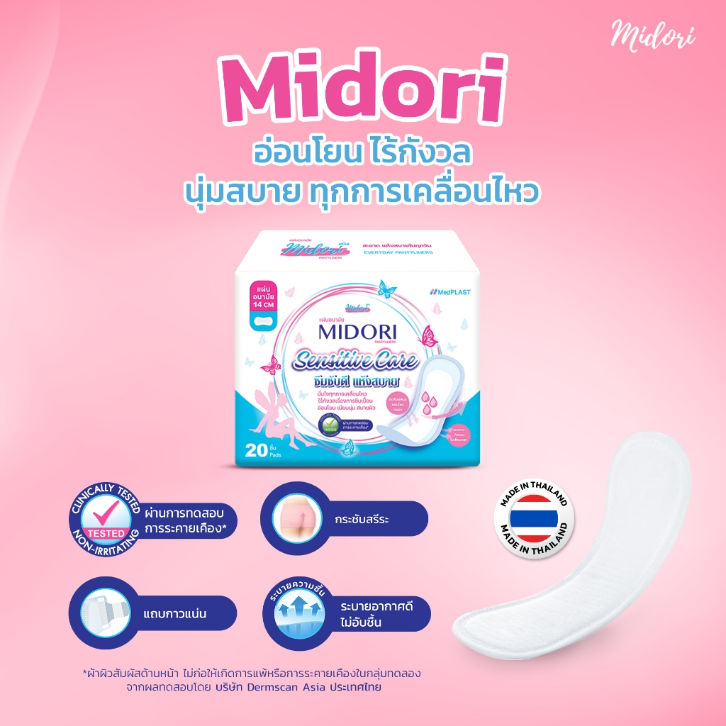 แผ่นอนามัย Midori รุ่น Sensitive Care 14 cm. จำนวน 20 ชิ้น (4 แพ็ค)