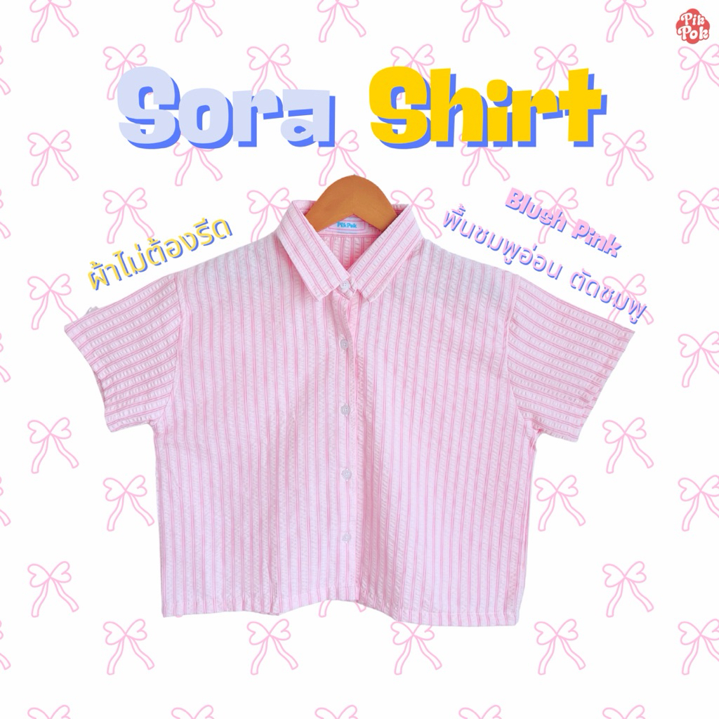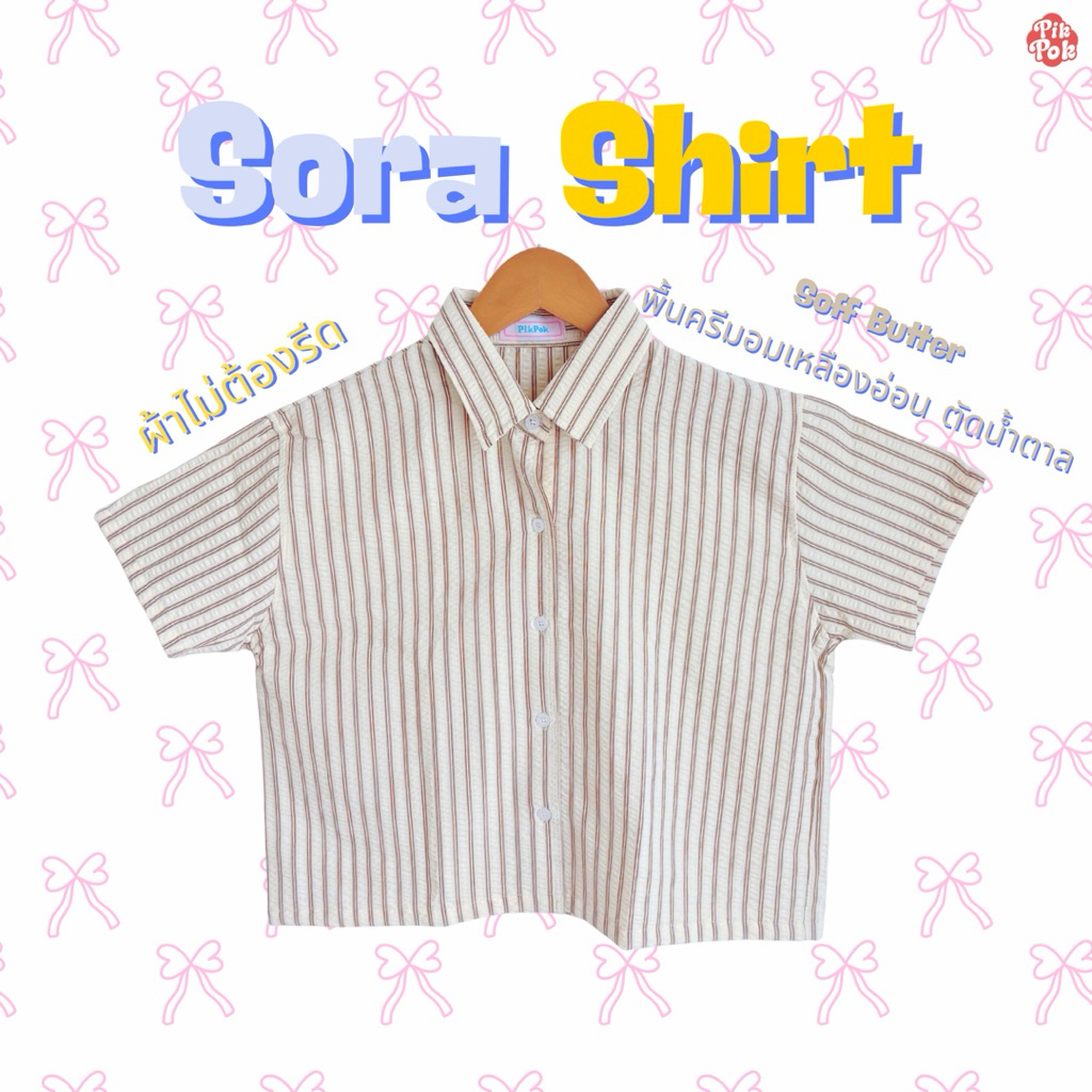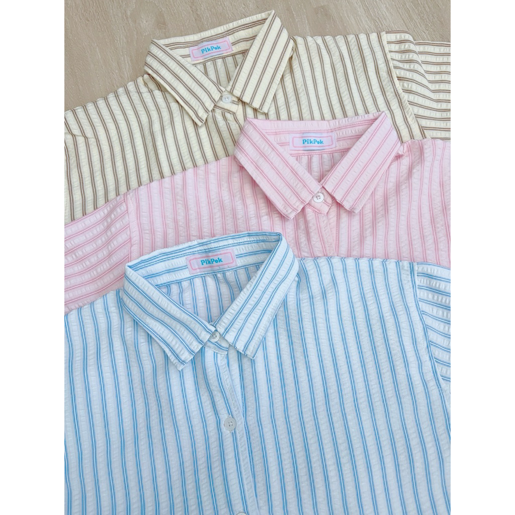 (New) Pikpok♡ Sora Short เสื้อเชิ้ตลายทาง เสื้อเชิ้ตครอป ผ้าไม่ต้องรีด ผ้าคอตตอนอัดยับ เนื้อผ้านุ่ม เบา ระบายอากาศดี