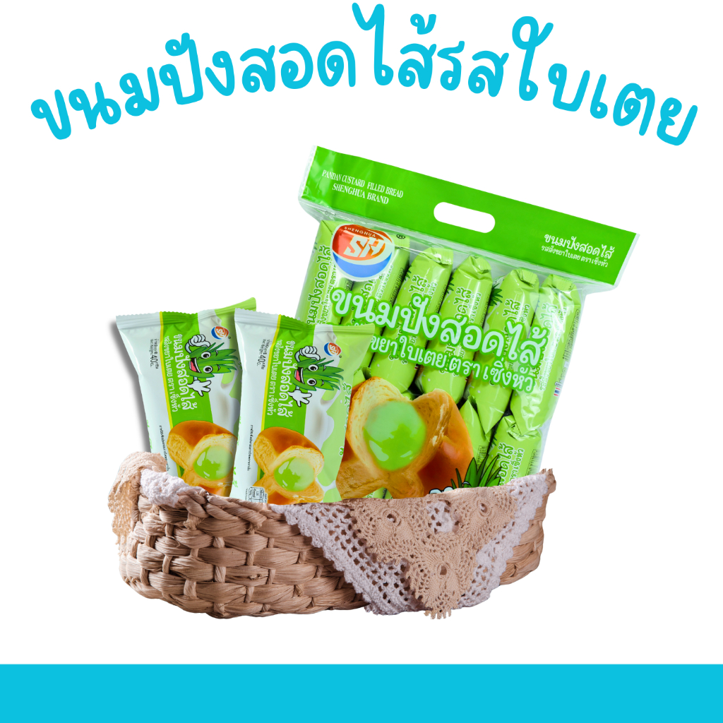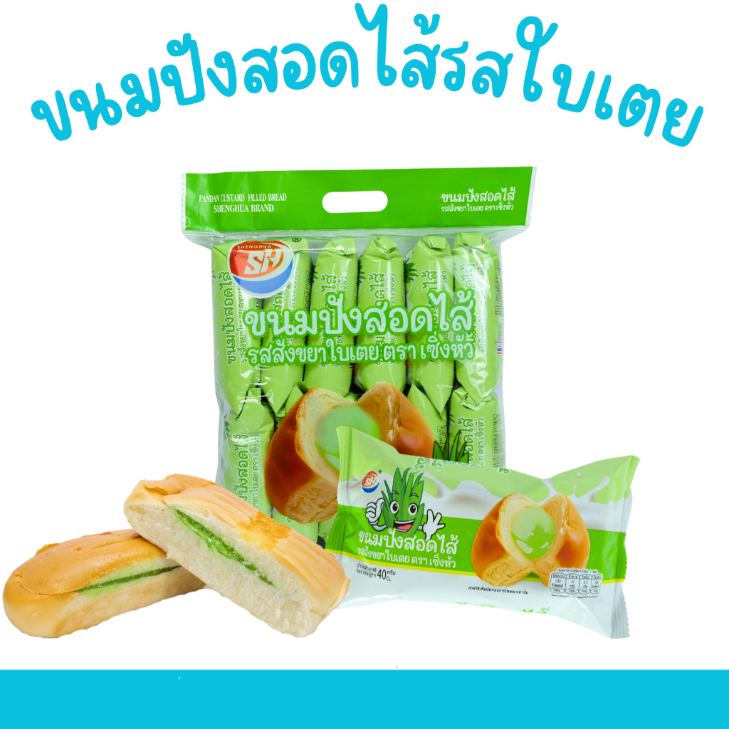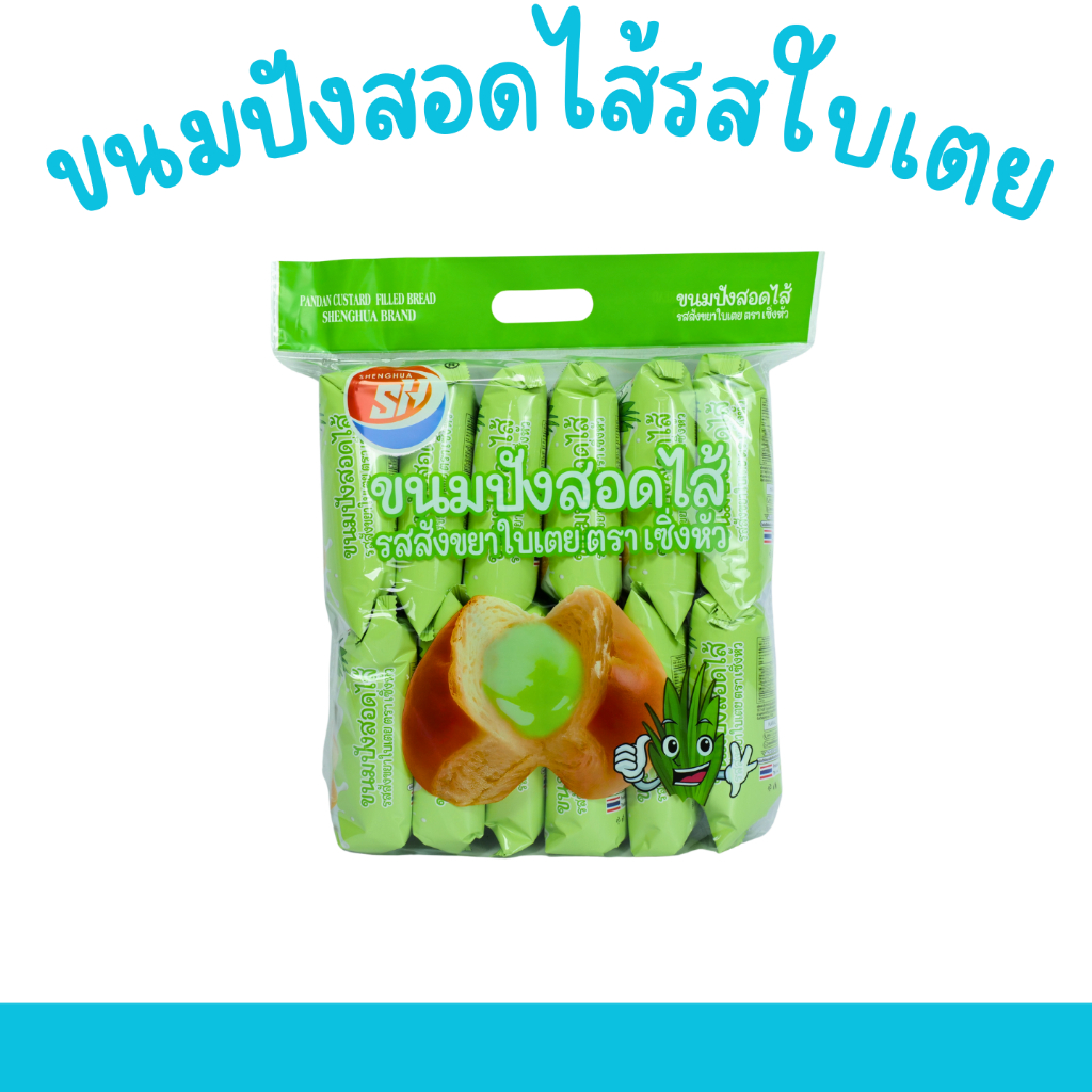 ขนมปังสอดไส้ใบเตย แบรนด์ Shenghua ยกลัง 12 แพ็ค (รวม 144 ชิ้น) ขนมปังแป้งนุ่มหอมละมุน สอดไส้ใบเตย หอมหวานกลิ่นใบเตยแบบไท
