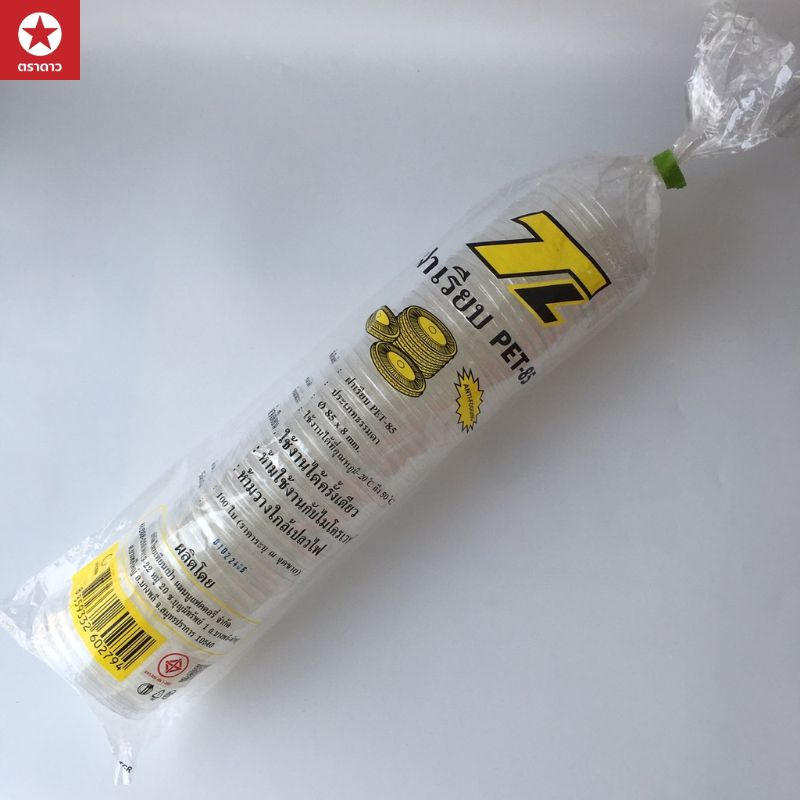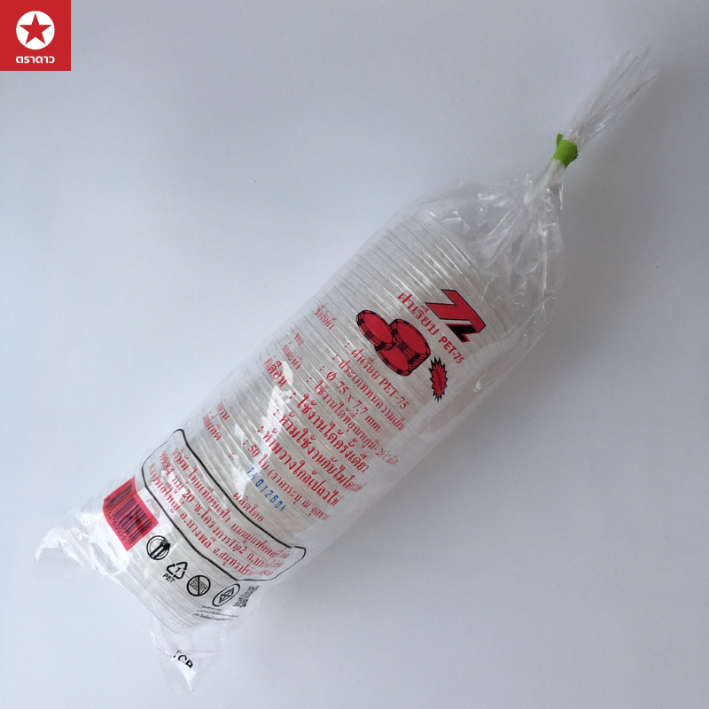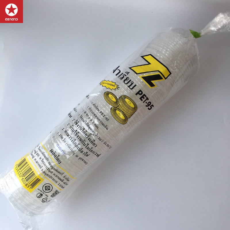 [ตรา TL] ฝาเรียบ PET สำหรับแก้ว PP Ø85/90/95 เจาะ/ไม่เจาะ (บรรจุ 50-100 ใบ/แถว)