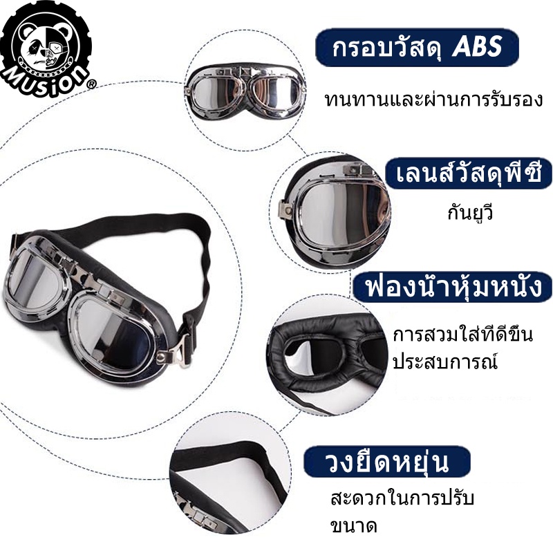 Musion แว่นตารถจักรยานยนต์แว่นตาหมวกกันน็อคนักบินวินเทจคลาสสิกสําหรับ โมโตสกู๊ตเตอร์ Atv นักขี่วิบาก