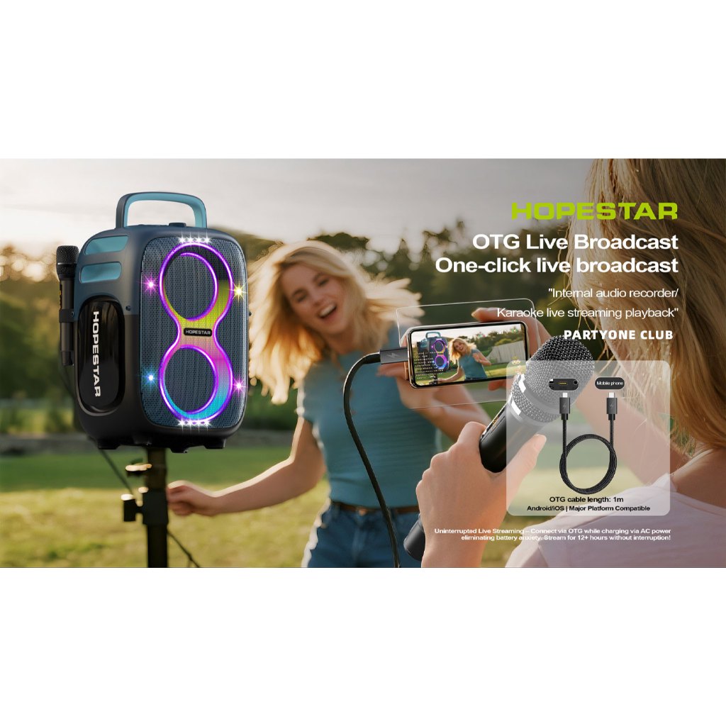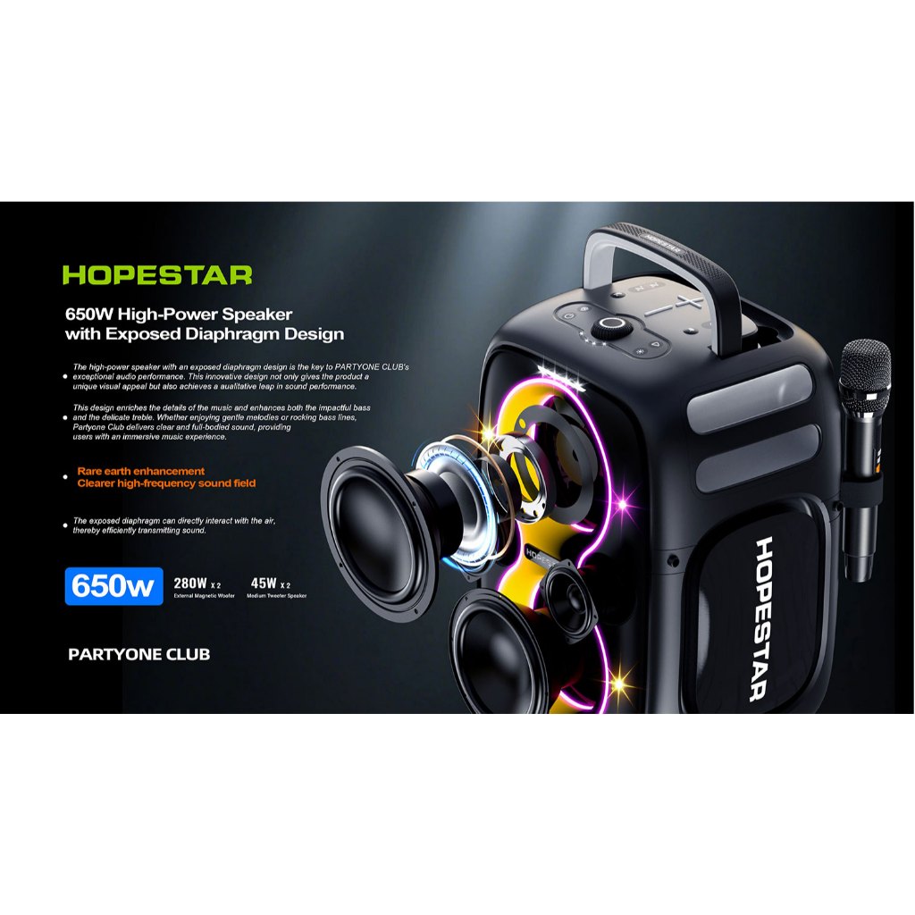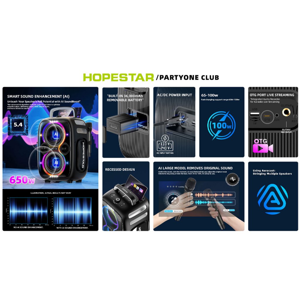 HOPESTAR PARTYONE CLUB ลำโพงบลูทูธ ปาร์ตี้ 650W ไมค์ลอยคู่ เบสหนัก AI SoundBoost