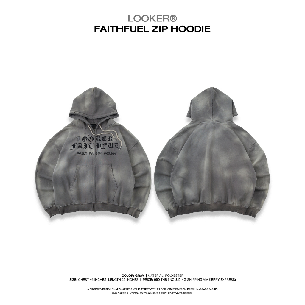 เสื้อฮู้ดซิปงานปักโลโก้กลางอกLOOKER® — FAITHFUEL ZIP HOODIE