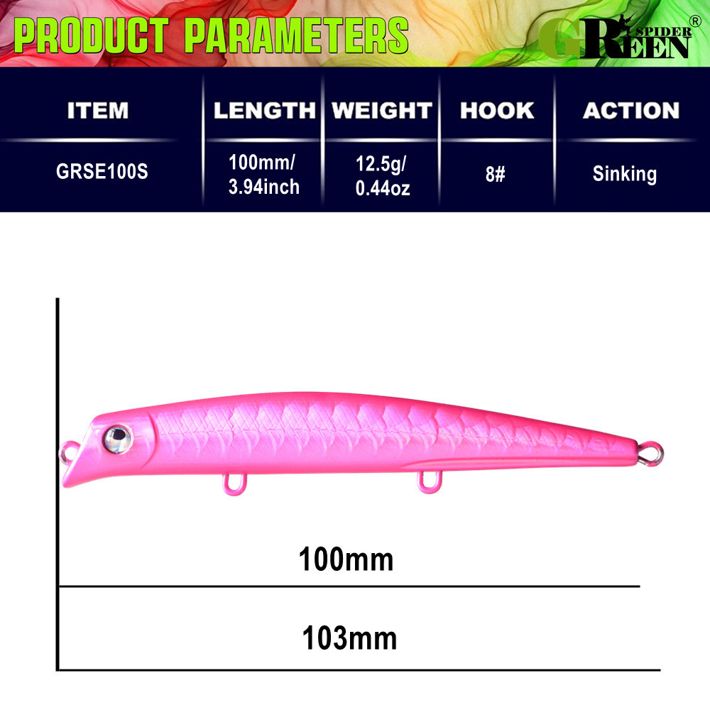 GREENSPIDER Sinking Minnow เหยื่อตกปลา 100 มม.12.5g Jerkbait Bass Pike Carkbait Wobblers Swimbait Professional Hard เหยื่อ