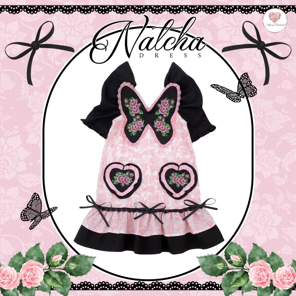 (มี3XL) Natcha Dress เดรสทรงปล่อยผ้าซีทรู texture ลายผีเสื้อมีกลิตเตอร์ แขนกระทุ้งไหล่มีสม็อค ปักทั้งชุด มีซิปหลัง