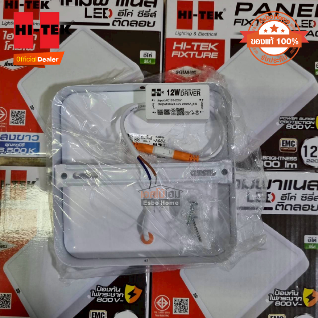 Hi-Tek ไฟ ดาวน์ไลท์ ไฟพาแนล แอลอีดี LED 12W Eco แบบเหลี่ยม สีขาว ชนิดติดลอย แสง เดย์ไลท์ และ สีวอร์มไวท์
