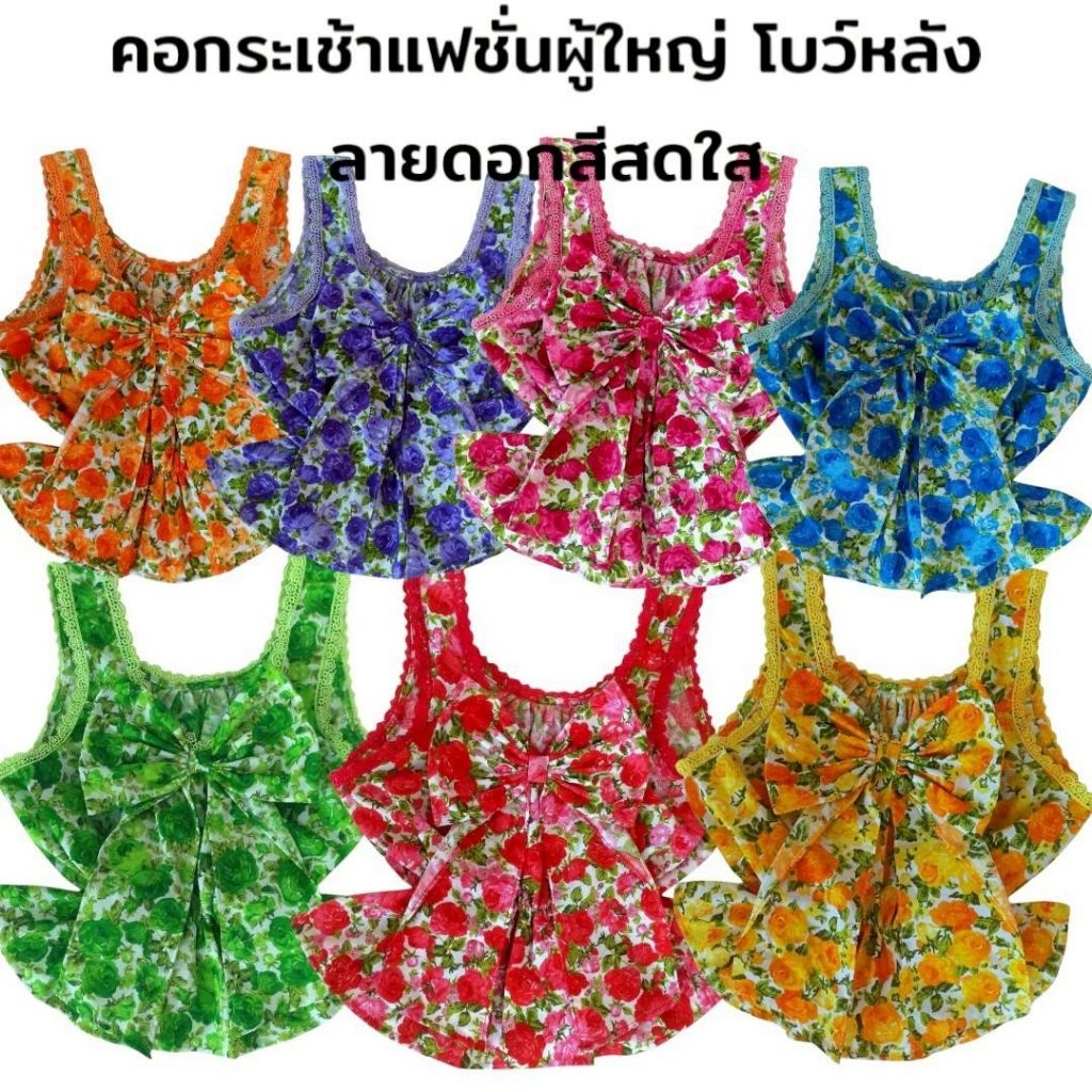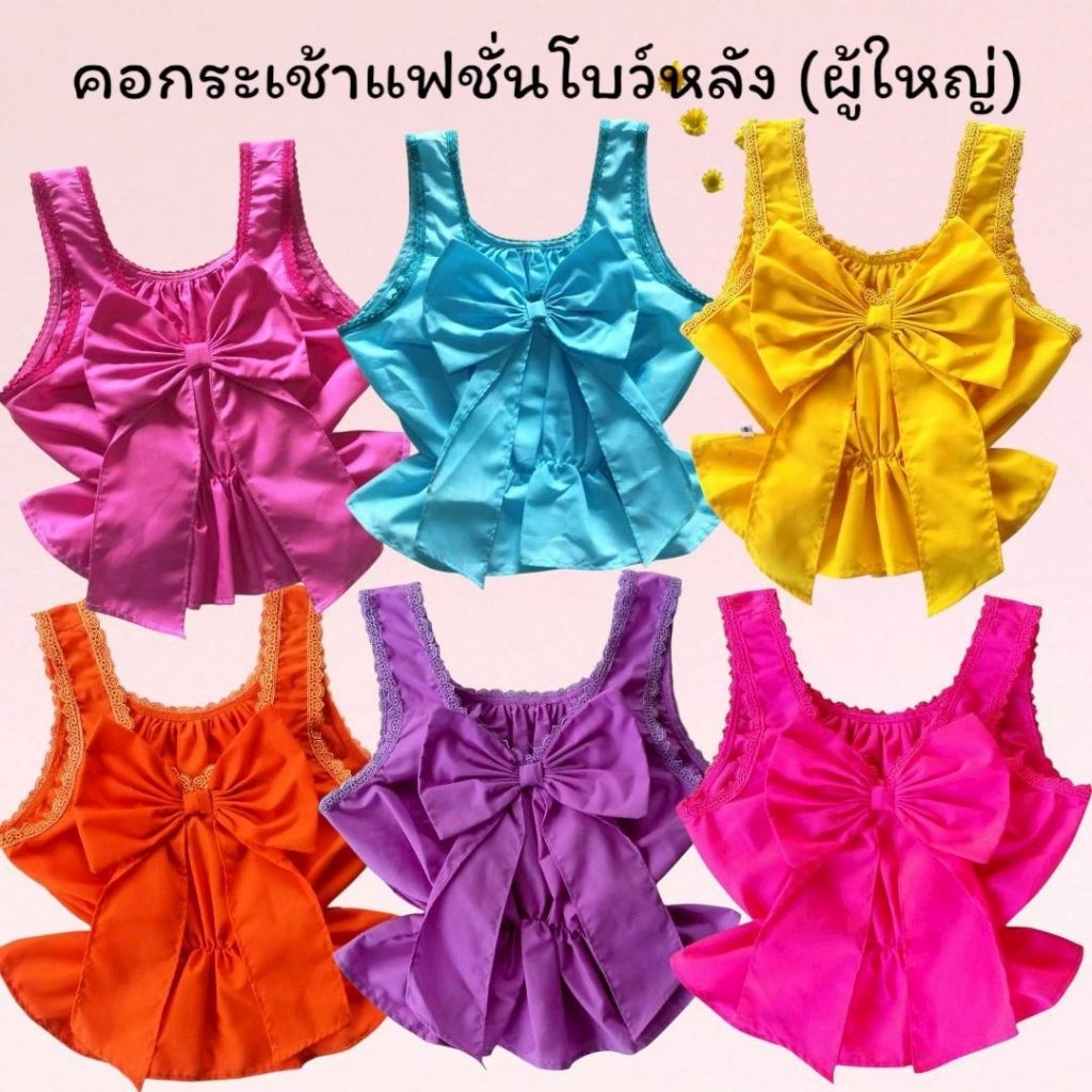 ึคอกระเช้าสีพื้นแฟชั่นโบว์หลังผู้ใหญ่ คอกระเช้าลายดอก คอกระเช้าแฟชั่นสีพื้นและลายดอกสีสดต้อนรับปีใหม่และสงกรานต์