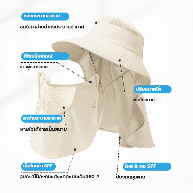 หมวกกันแดด หมวก ปิดหน้า หมวกกันแดด สามารถแยกชิ้นได้ UPF50+ ออกแบบเพื่อกันลม กันฝุ่น และป้องกัน UV