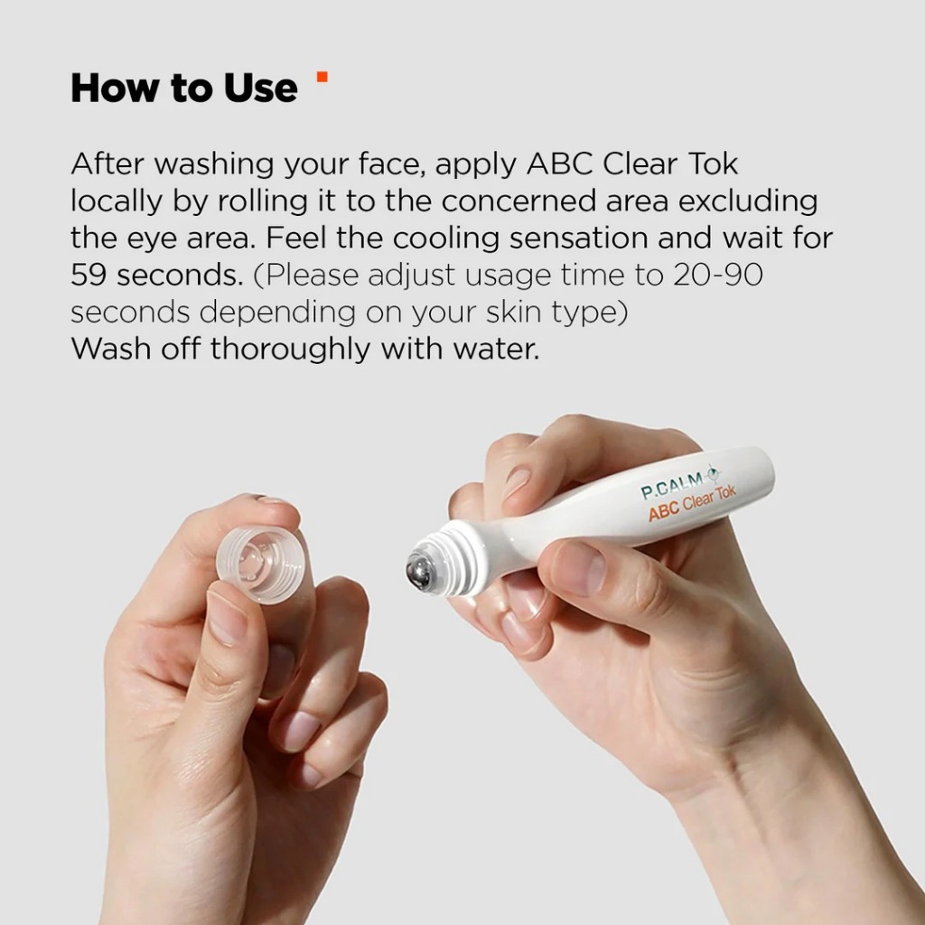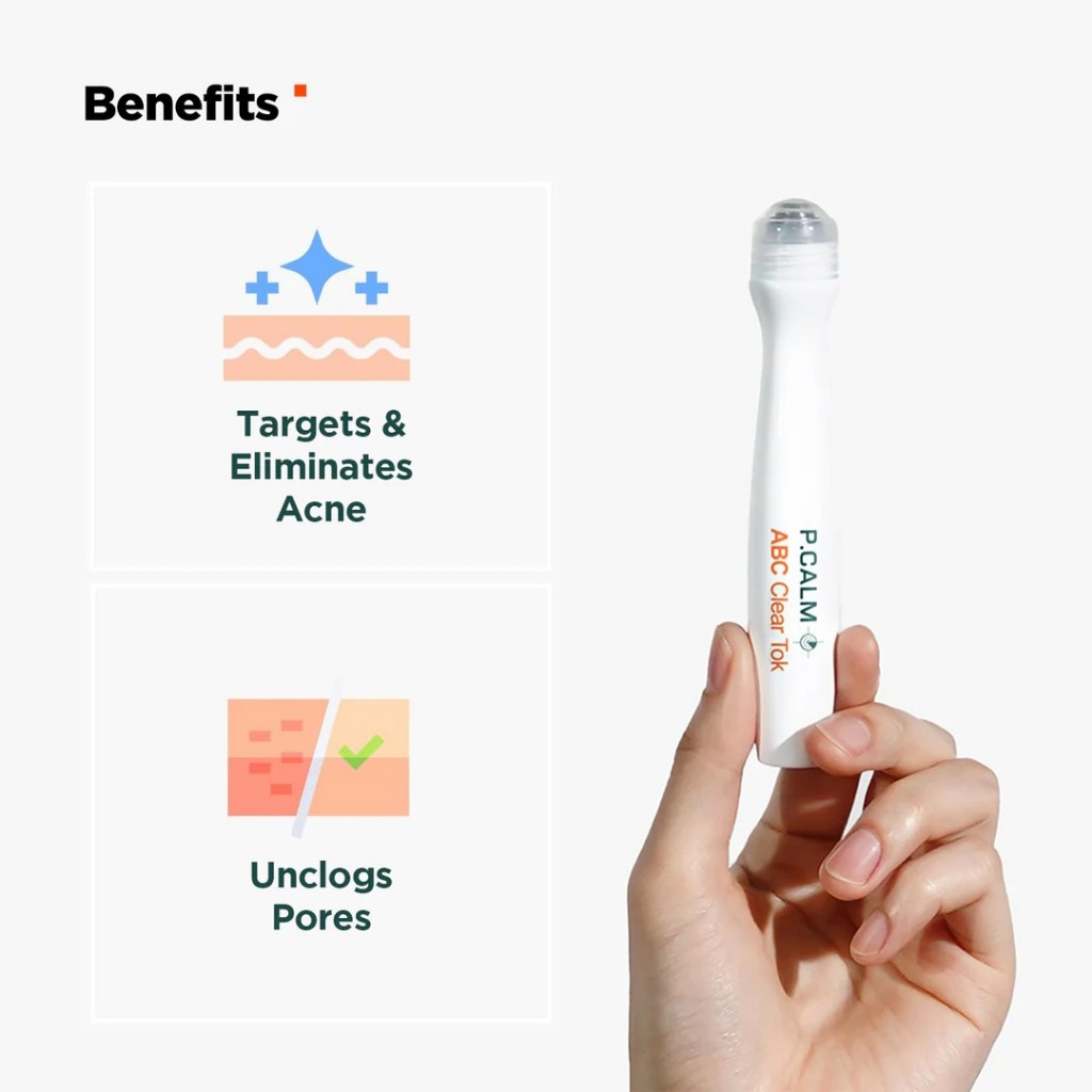 P.CALM ABC Clear Tok (15 มล.) | โรลออน สปอต ทรีทเมนท์ | Made in Korea อุปกรณ์หมุนม้วนสแตนเลสอนามัย