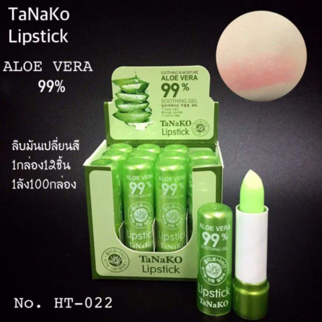 (1ชิ้น) ลิปว่านหาง99% ลิปมันเปลี่ยนสี ลิปสติก ว่านหางจระเข้ Tanako Aloe Vera 99% Lip