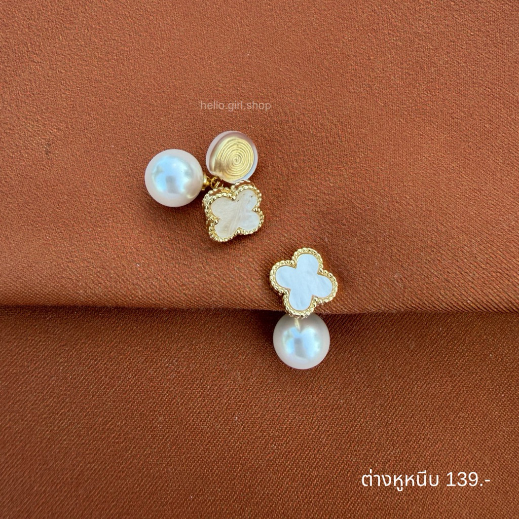( ต่างหูหนีบ ขดลวด ) ต่างหูไข่มุก