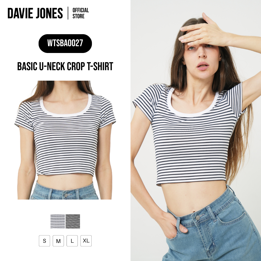 DAVIE JONES WOMEN [BE FEARLESS] เสื้อยืดผู้หญิง U-Neck Crop T-Shirt สีขาว ดำ BA0027