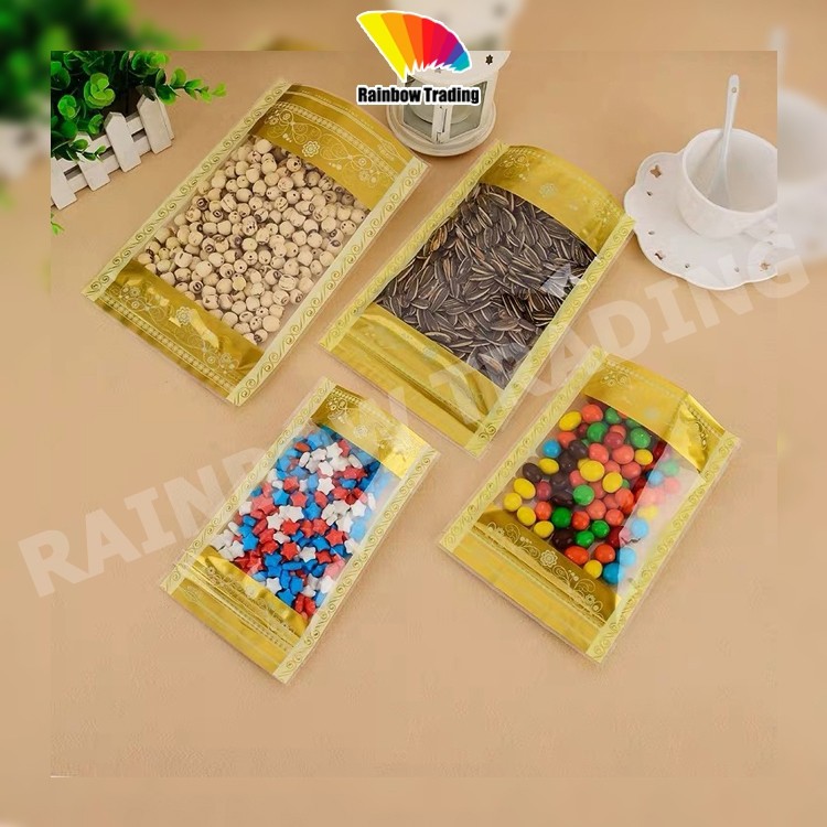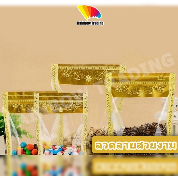 ถุงพลาสติกใส รูดปิด ลายดอกไม้สีทอง ตั้งได้ (50ใบ) :CG