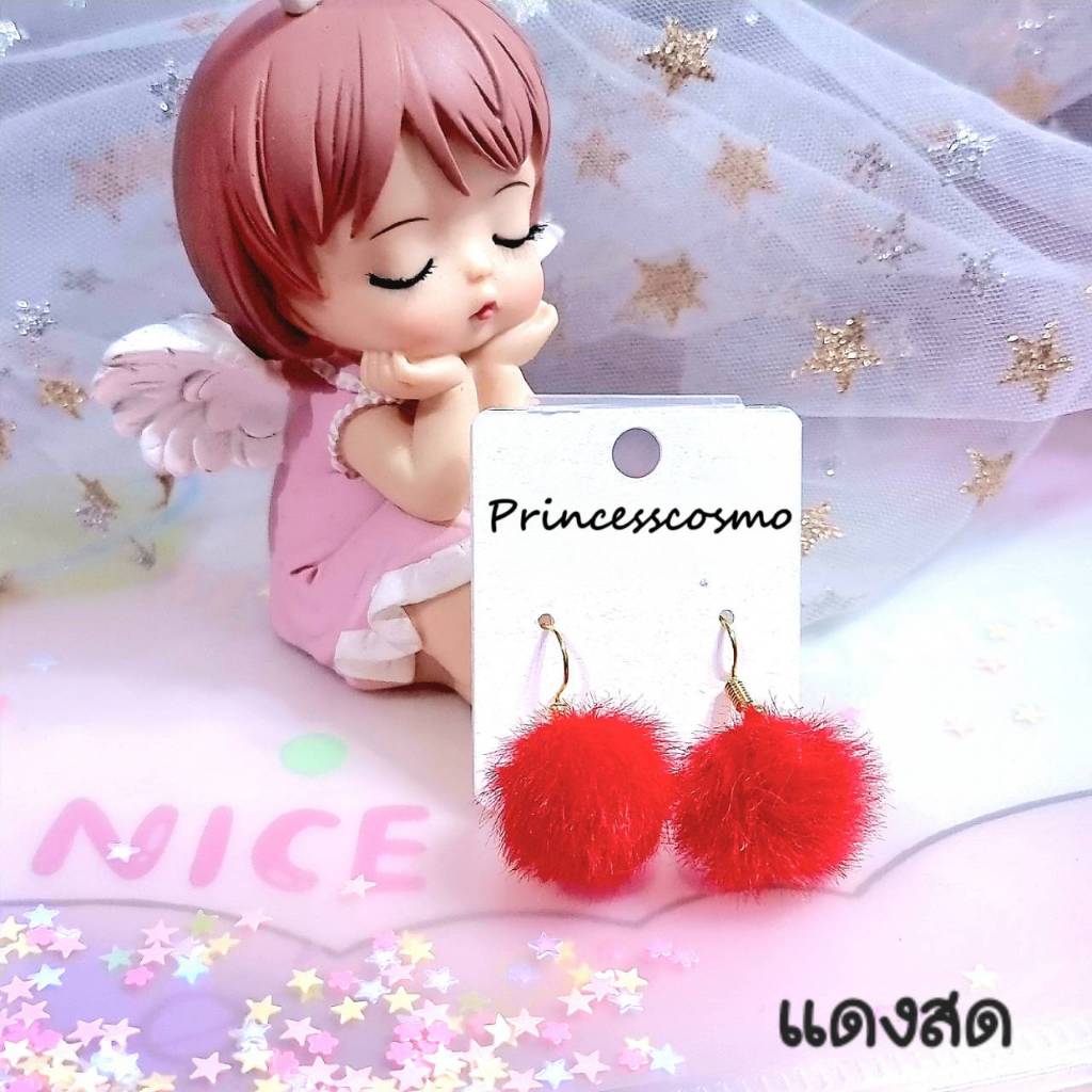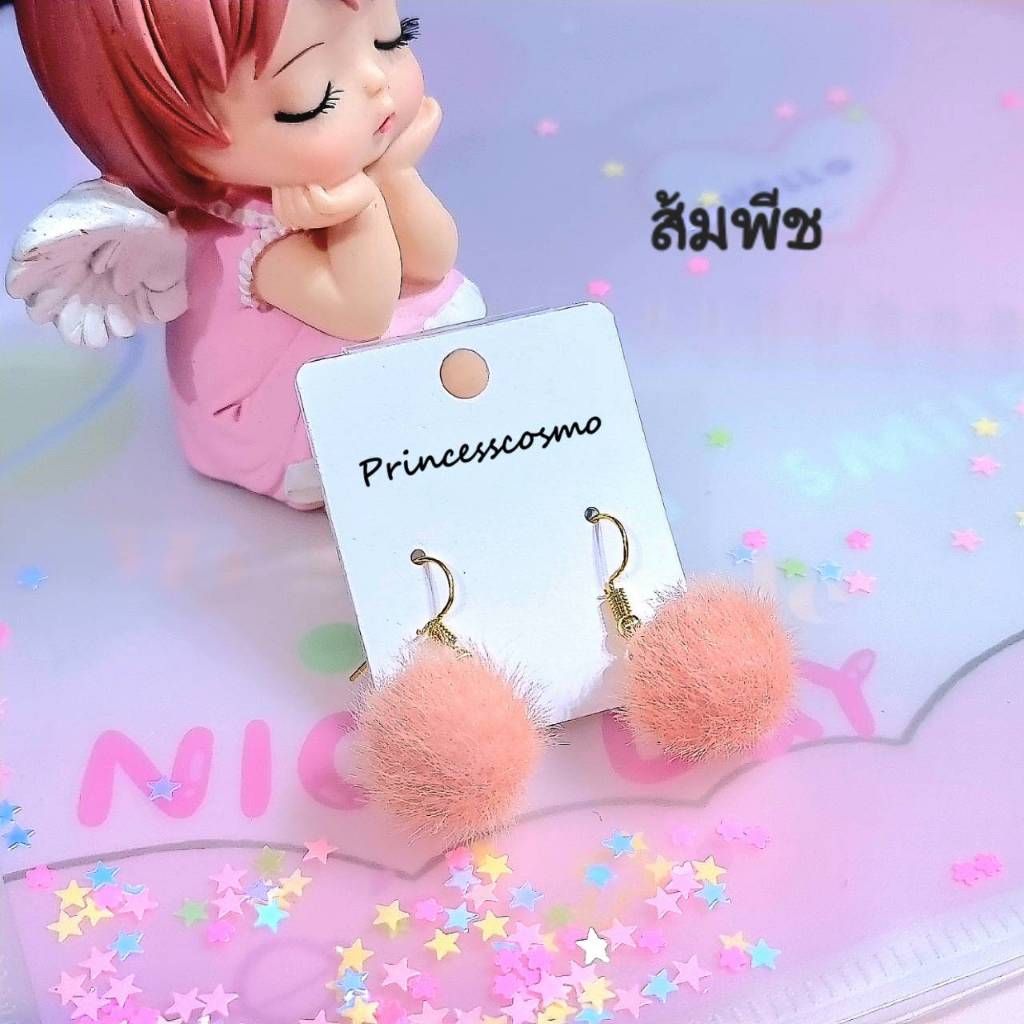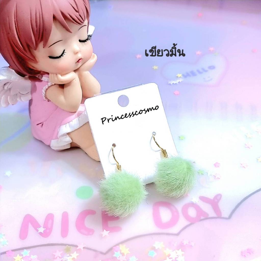 🌟ต่างหูแฟชั่นขนเทียมมุ้งมิ้งน่ารักมีหนีบและเจาะ🌟