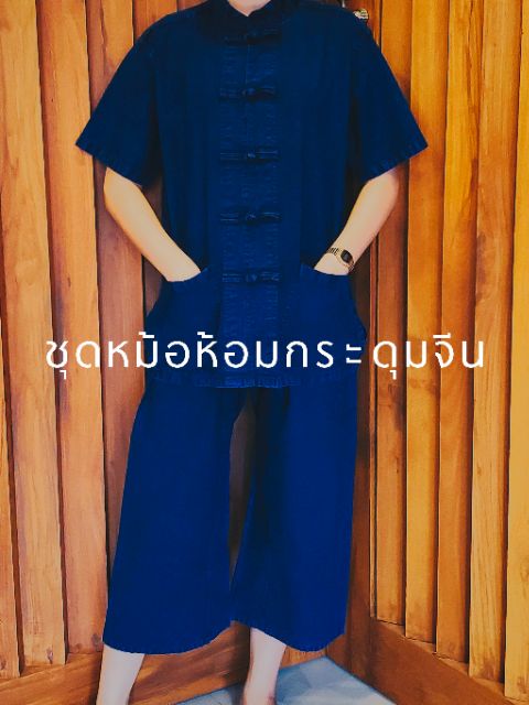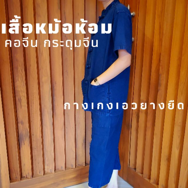 (ขายแยกเสื้อกับกางเกง)เสื้อหม้อห้อม ม่อฮ่อมฟอกหิมะ คอจีน กระดุมจีน กางเกงขาสามส่วน เอวยางยืด