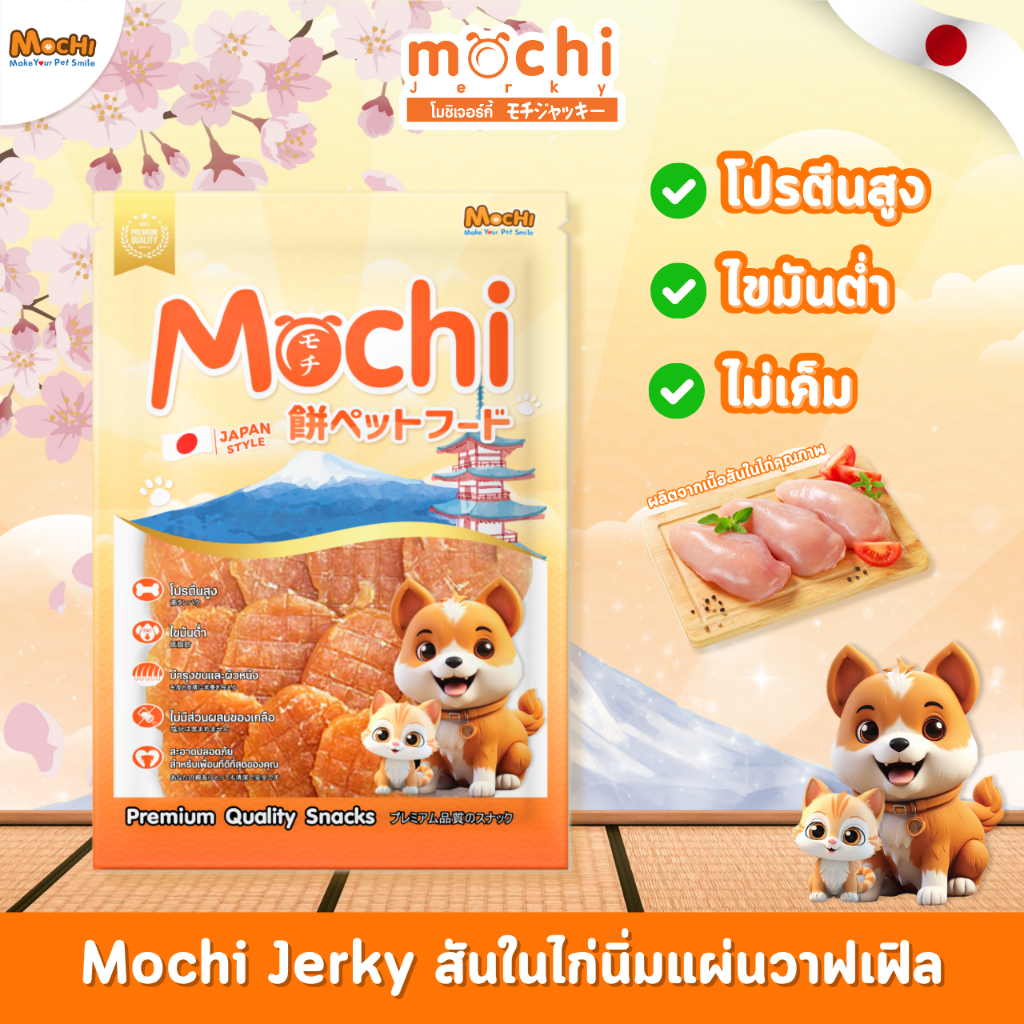 MochiJerky ขนมสุนัข ไก่นิ่มแผ่นวาฟเฟิล บรรจุ 17 ชิ้น ไม่เค็ม ไม่เติมเกลือ