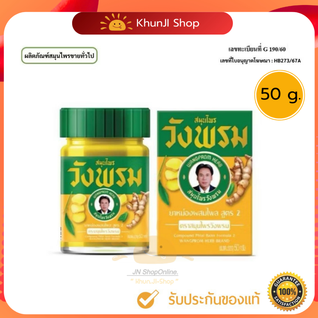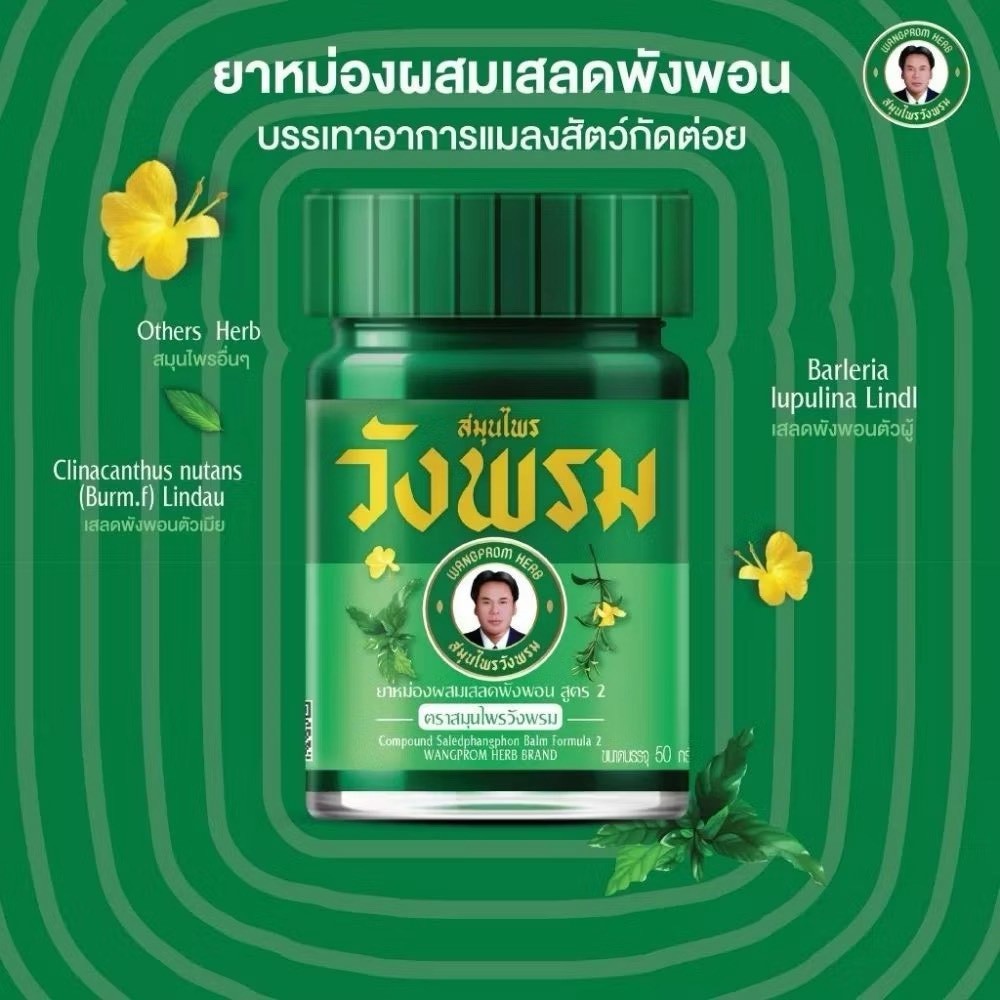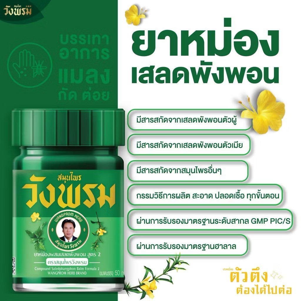 (สมุนไพรวังพรม) ยาหม่องผสมเสลดพังพอน สูตร2 ขนาด 50 กรัม Wangpromherb