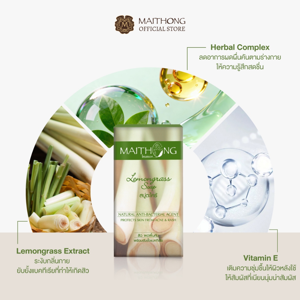 [เซ็ตสุดคุ้ม แพ็ค3] Maithong ไหมทอง สบู่ตะไคร้หอม 100g ระงับกลิ่นกาย ยับยั้งแบคทีเรีย ลดสิวที่หลังและผดผื่น
