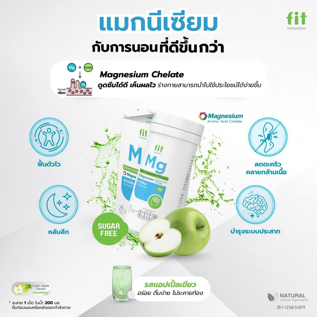 Fit Mg เม็ดฟู่ | Magnesium Chelate| รสแอปเปิ้ลเขียว | ลดตะคริว ปวดไมเกรน | ไม่มีน้ำตาล