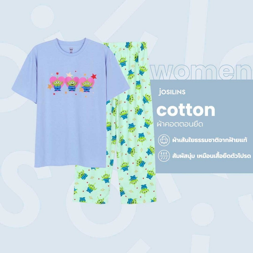 Josilins ชุดนอนผู้ใหญ่ ลิขสิทธิ์ Disney Pixar Toy Story เสื้อคอกลม แขนสั้น กางเกงขายาว ผ้ายืด