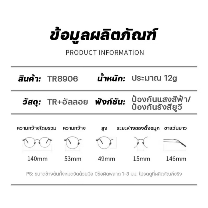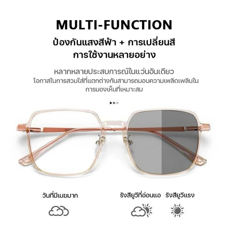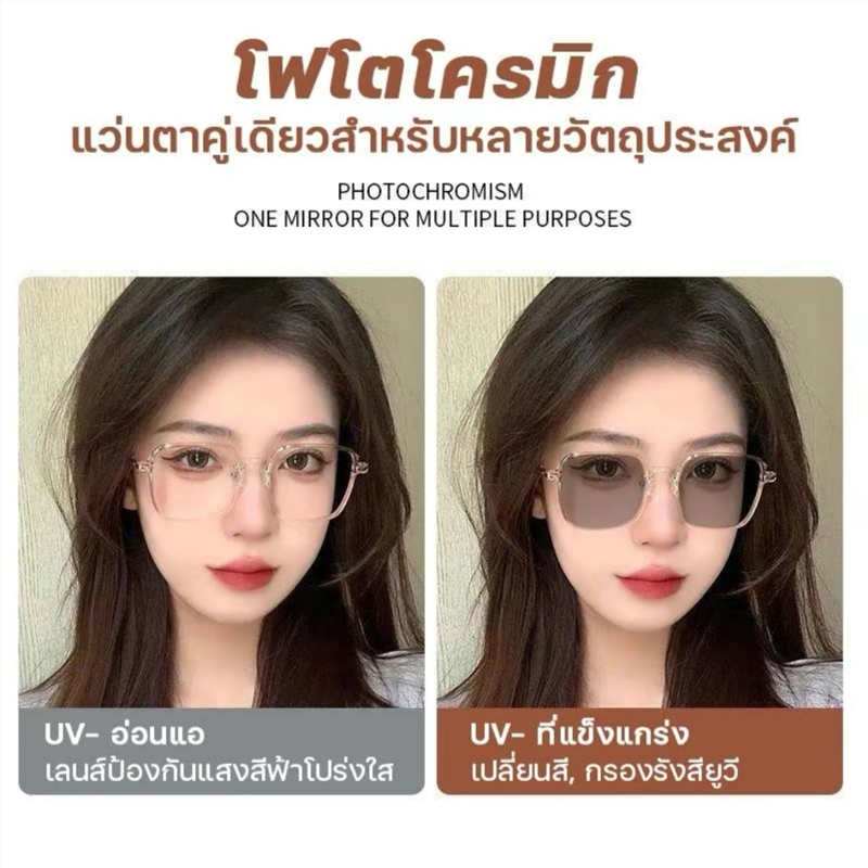 แว่นสายตาสั้นเลนส์ออโตเมติก ออกแดดเปลี่ยนสี UV400 แว่นกรองแสง ผญ สายสั้น เลนส์ออโต้ + กรองแสงสีฟ้า พร้อมแผ่นรองจมูก