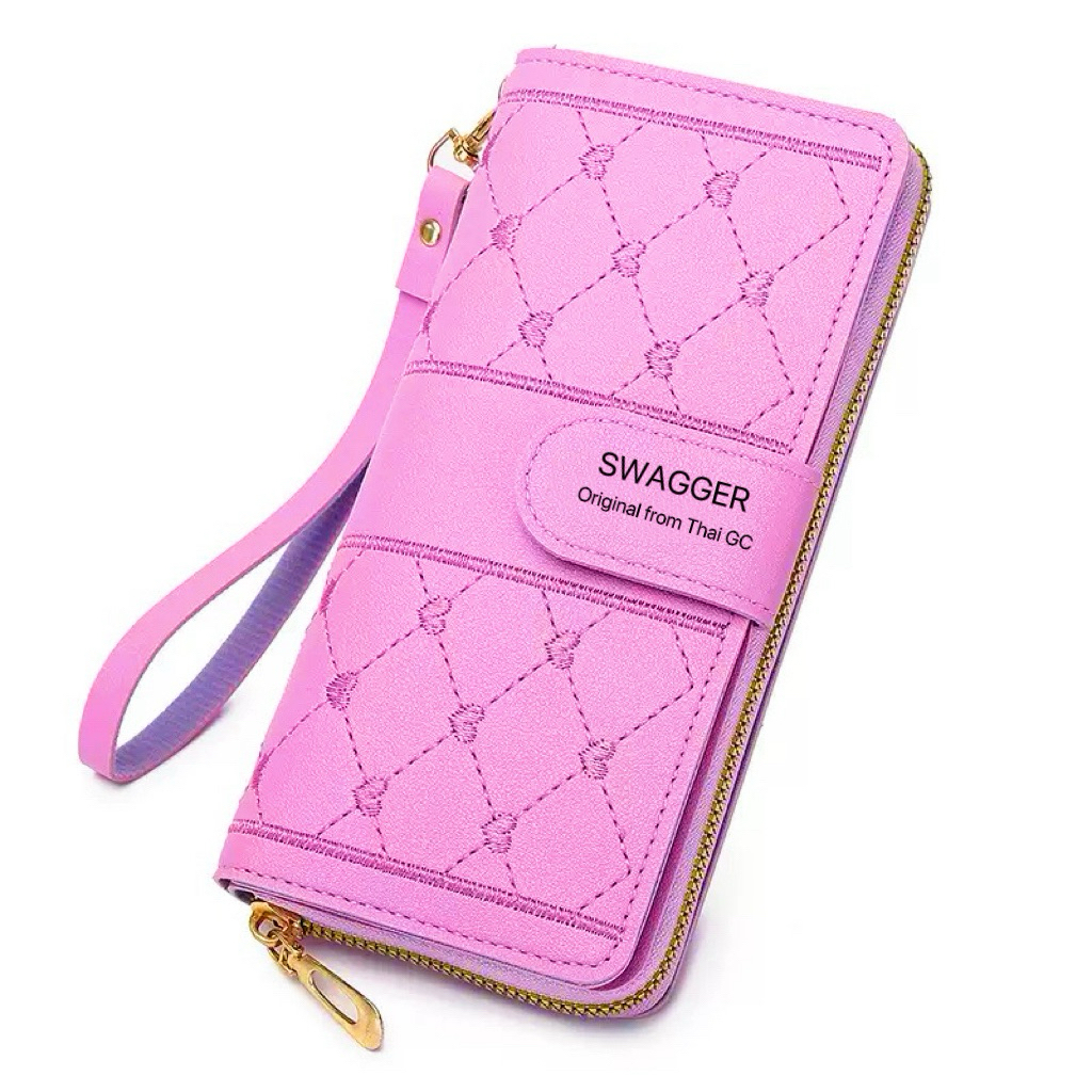 กระเป๋าสตางค์ใบยาว 2ผับ ใส่โทรศัพท์ได้ ใส่ธนบัตรได้ไม่ต้องผับ ใส่บัตรได้หลายใบ ลายปักหัวใจ มีสายคล้องมือ(GC-515)