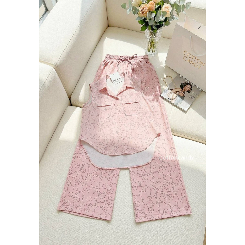 ชุดเซ็ตลายดอก Cotton Candy ผ้าพิมพ์ลายดอกเล็กๆผ้าไม่หนานะคะเหมาะสำหรับหน้าร้อน👜