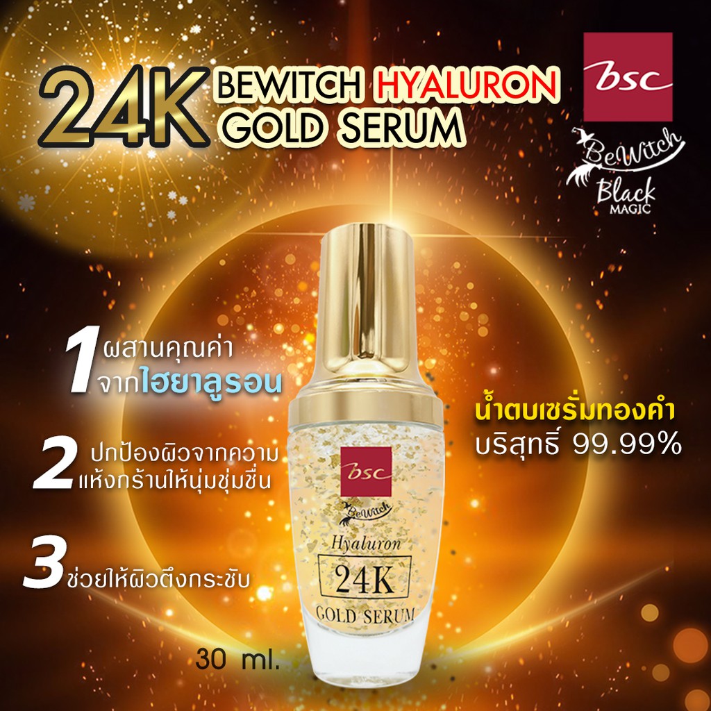 [ SET 2 ชิ้น ] BEWITCH BY BSC HYALURON 24K GOLD SERUM เซรั่มทองคำสูตรเข้มข้น มอบความชุ่มชื่น ให้ผิวแข็งแรง 30 มล.