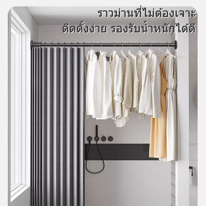 KEVE ม่านอาบน้ำ พับได้ ม่านอาบน้ำ ไม่ต้องเจาะ Shower Curtain ด้วยก้านยืดไสลด์ กันน้ำ ผ้าม่าน